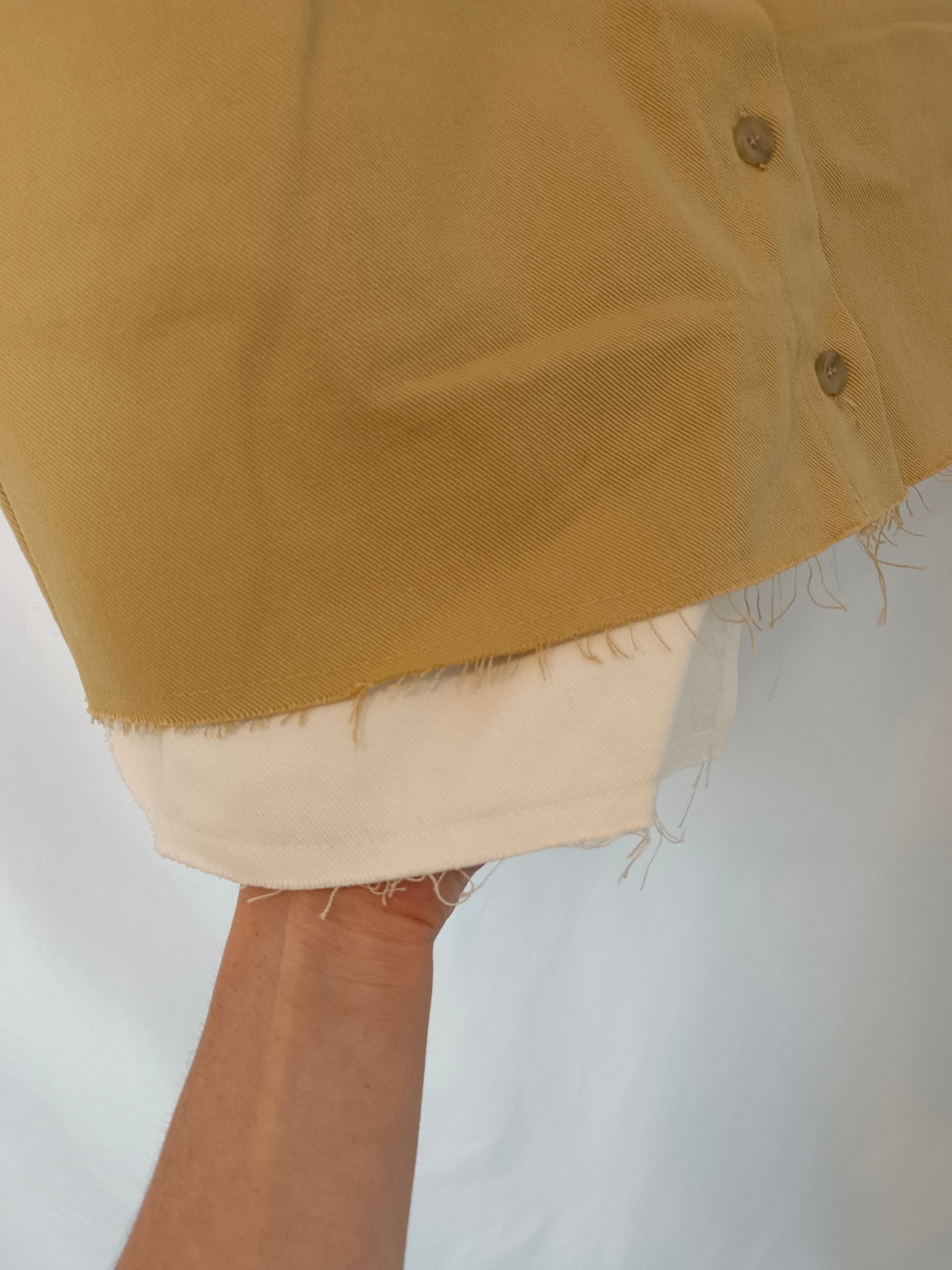 Falda corta 100% algodón beige abotonada con detalle de forro de los bolsillo más largos. Cintura 36 cm largo 37 cm