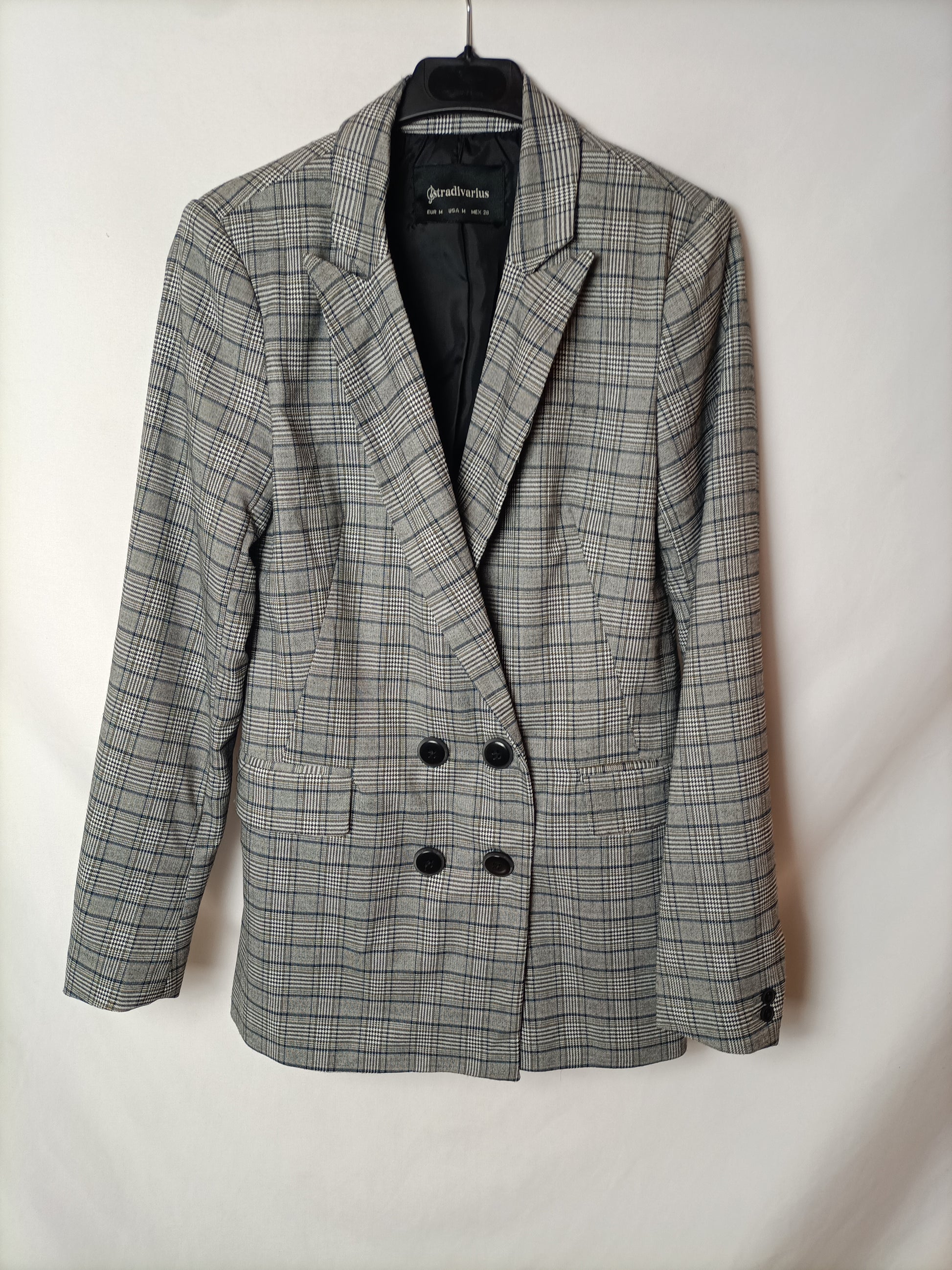 STRADIVARIUS. Blazer gris cuadros T. M