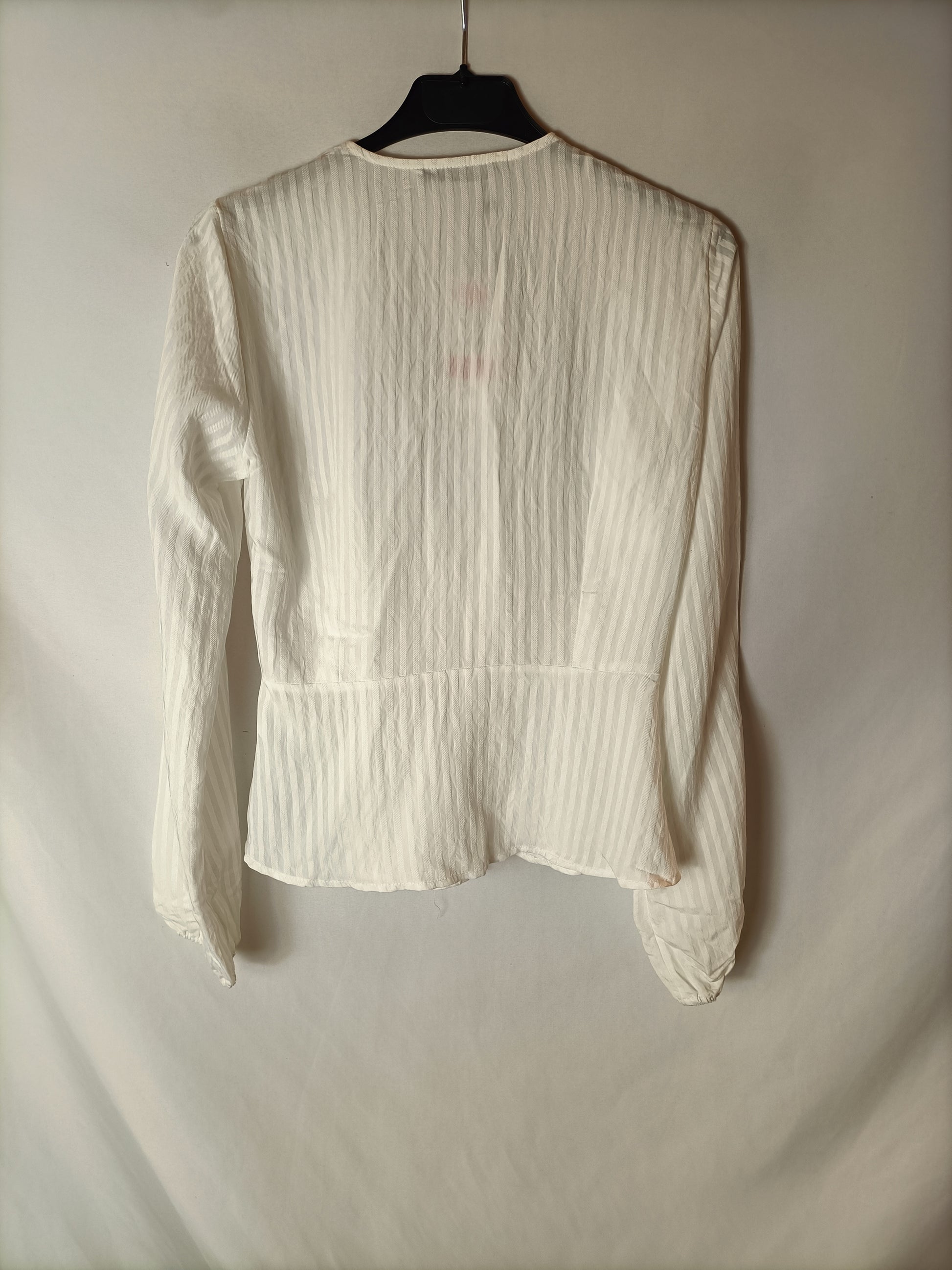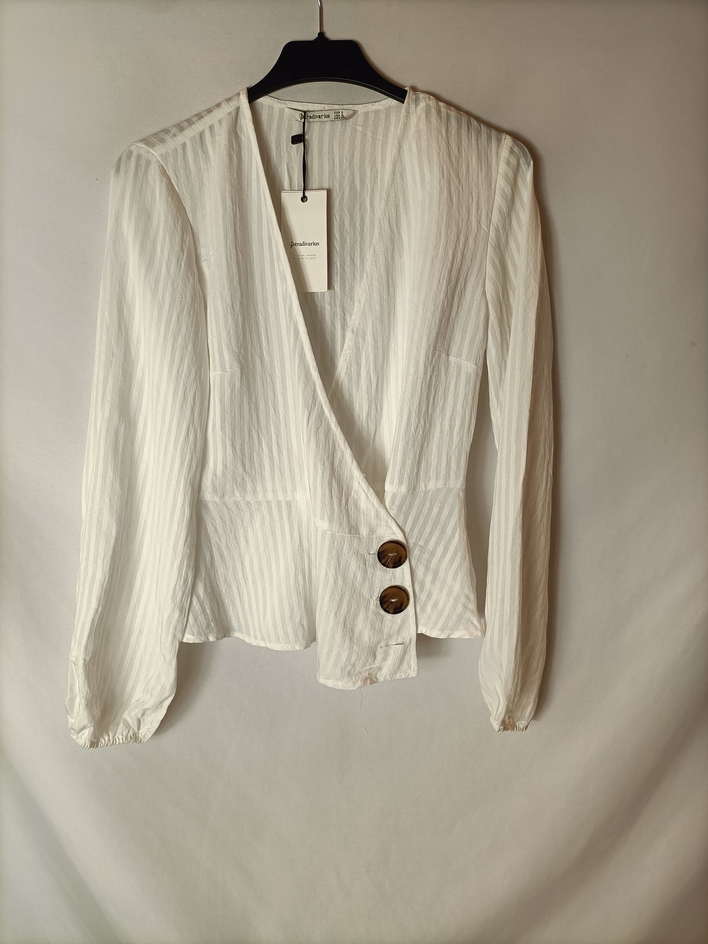 STRADIVARIUS. Blusa blanca cruzada T.s(tara)