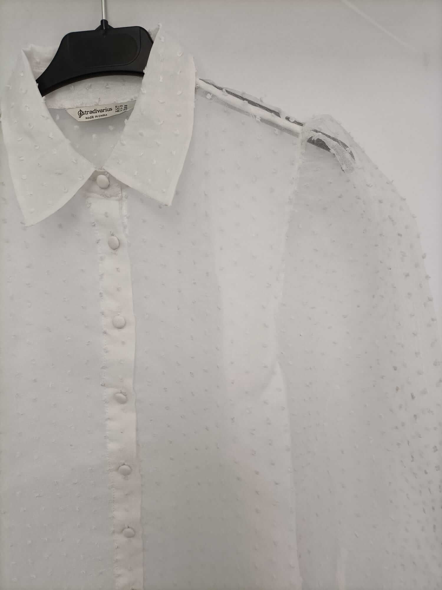 Stradivarius. M. Blusa blanca de plumeti transparente. Mangas Abullonadas. No elástica. De sisa a sisa 49 cm largo 65 cm