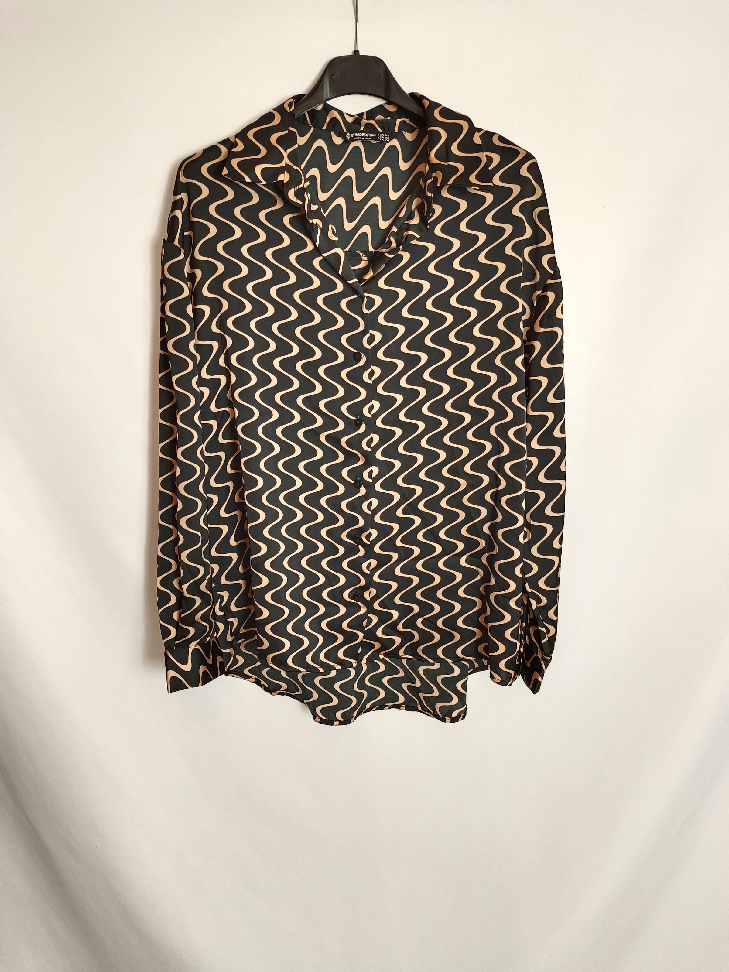 STRADIVARIUS. Blusa negra con rayas T.xs