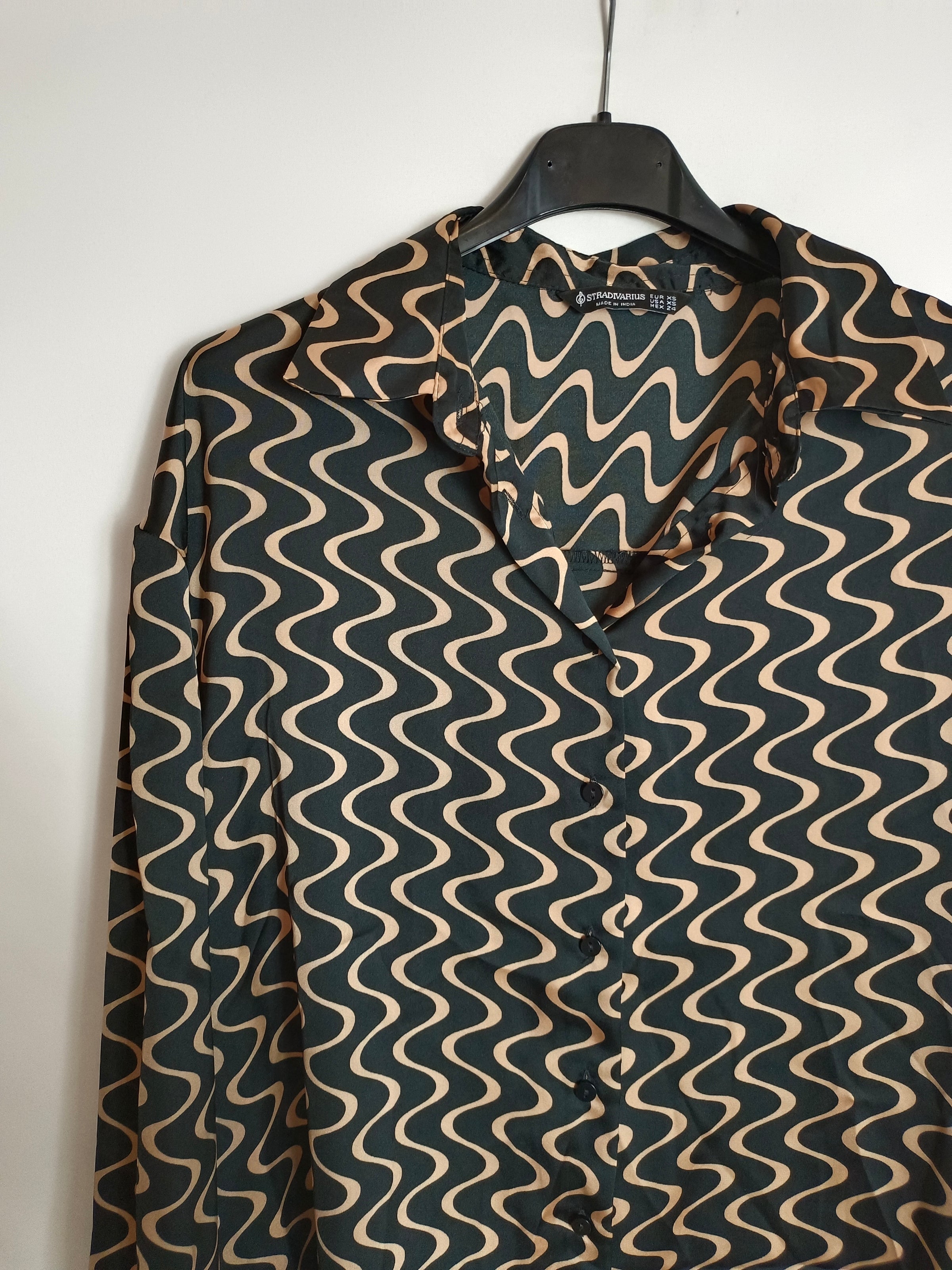 blusa negra con rayas onduladas beige
