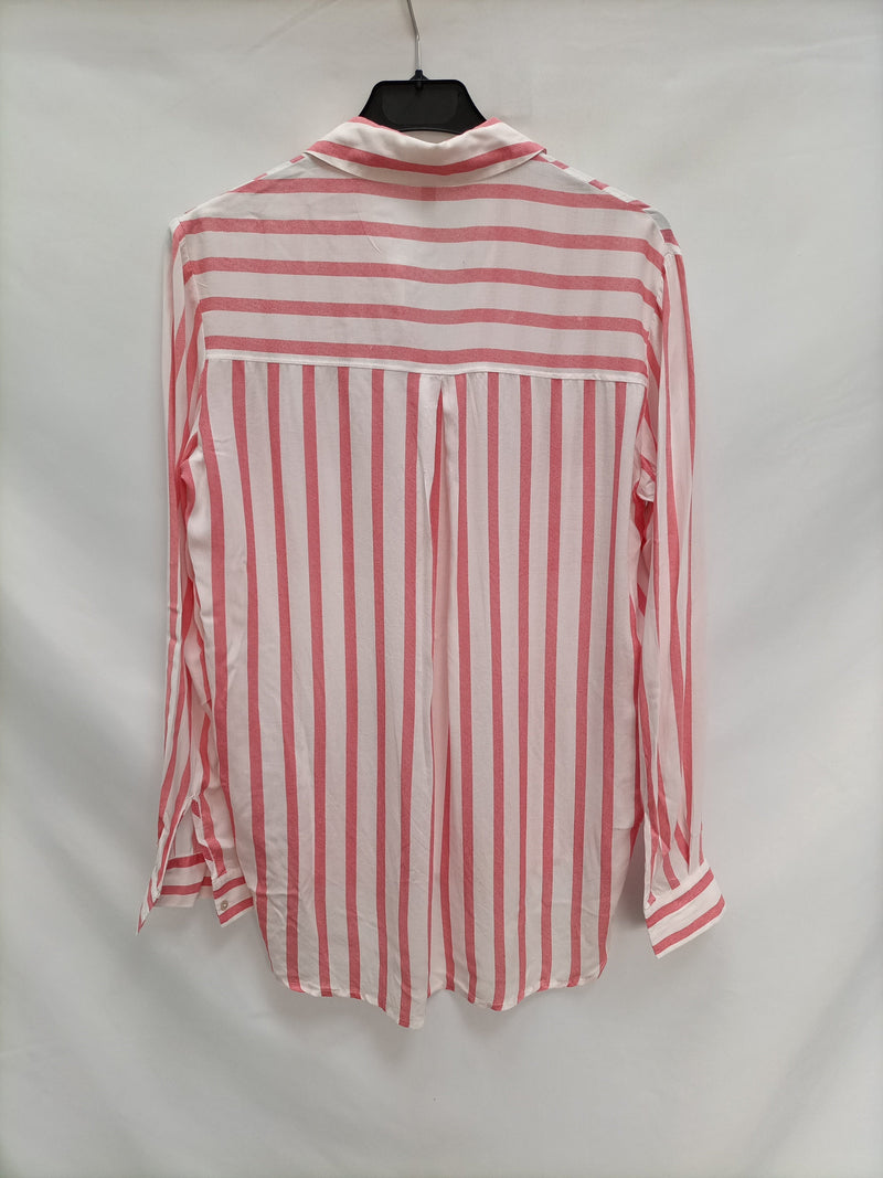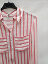 Blusa de rayas blanca y rosa coral fluida y abotonada. No elastica. De sisa a sisa 52 cm largo 78 cm