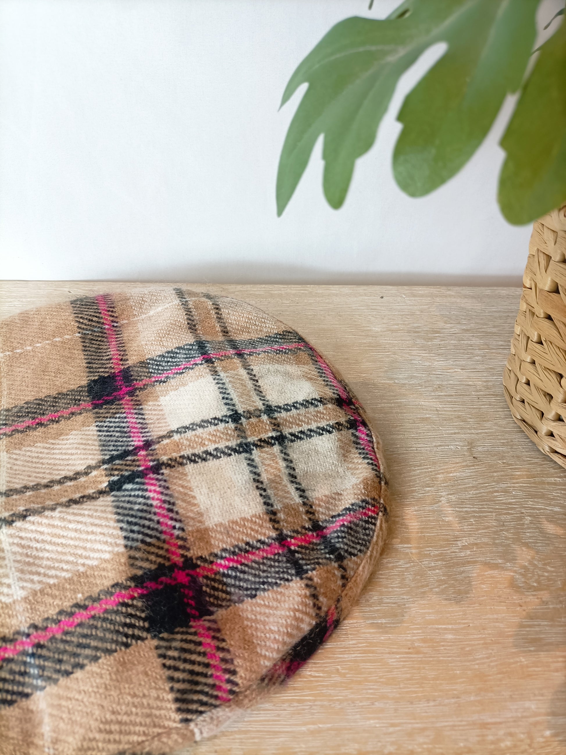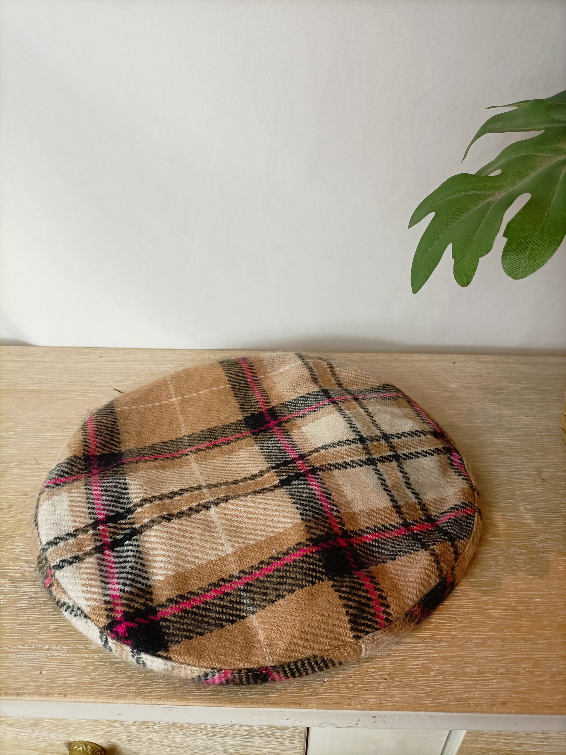 boina cuadros tonos beige