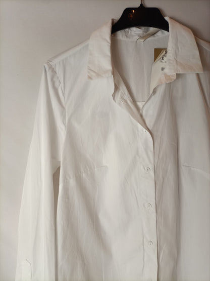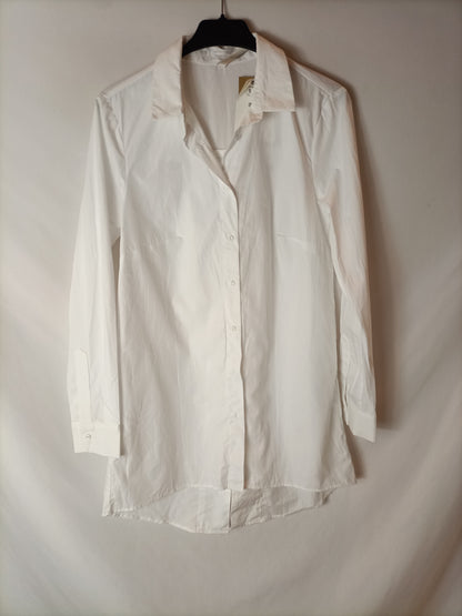 NUEVO CON ETIQUETA. camisa blanca abotonada con la parte trasera abierta.