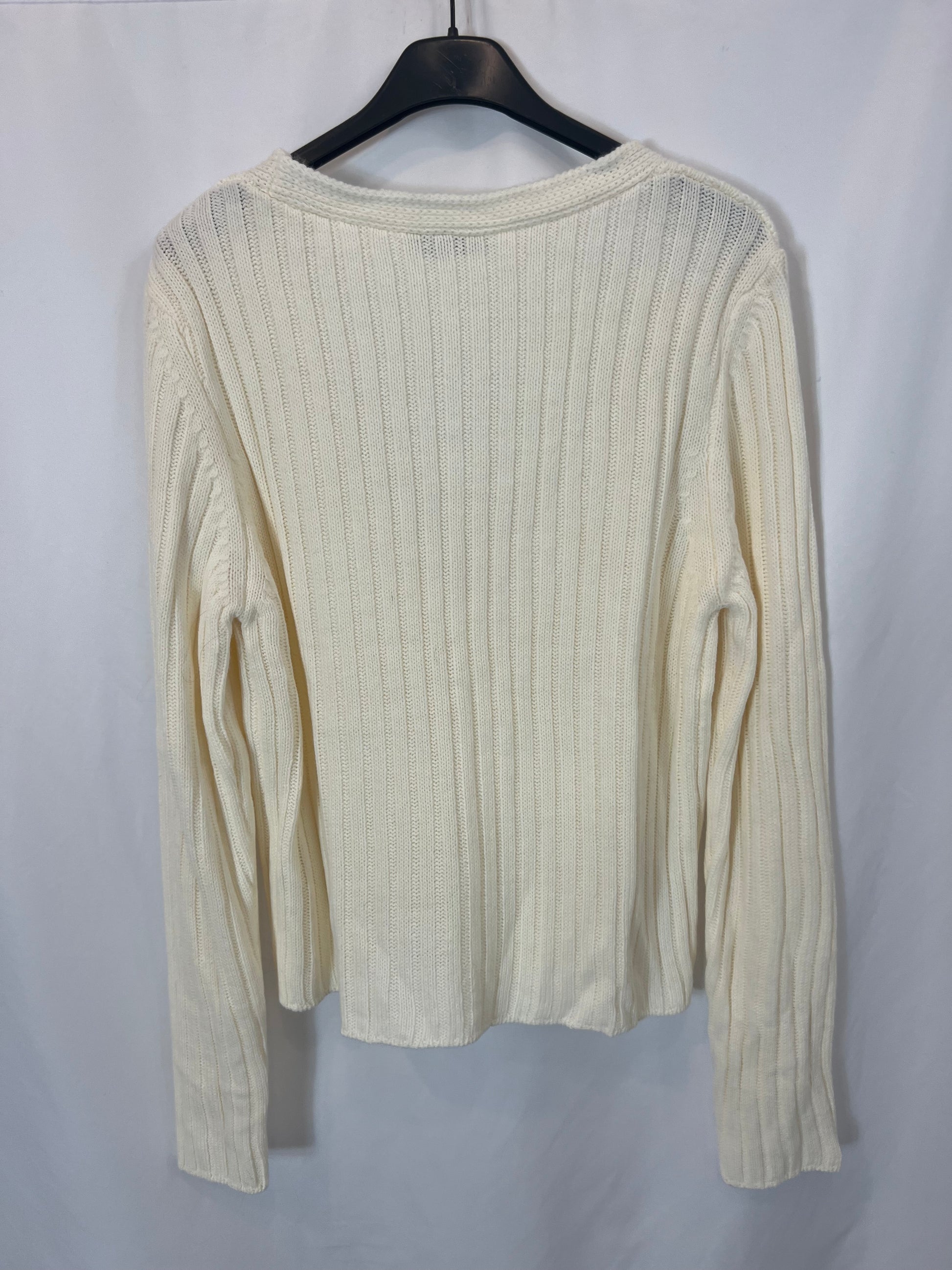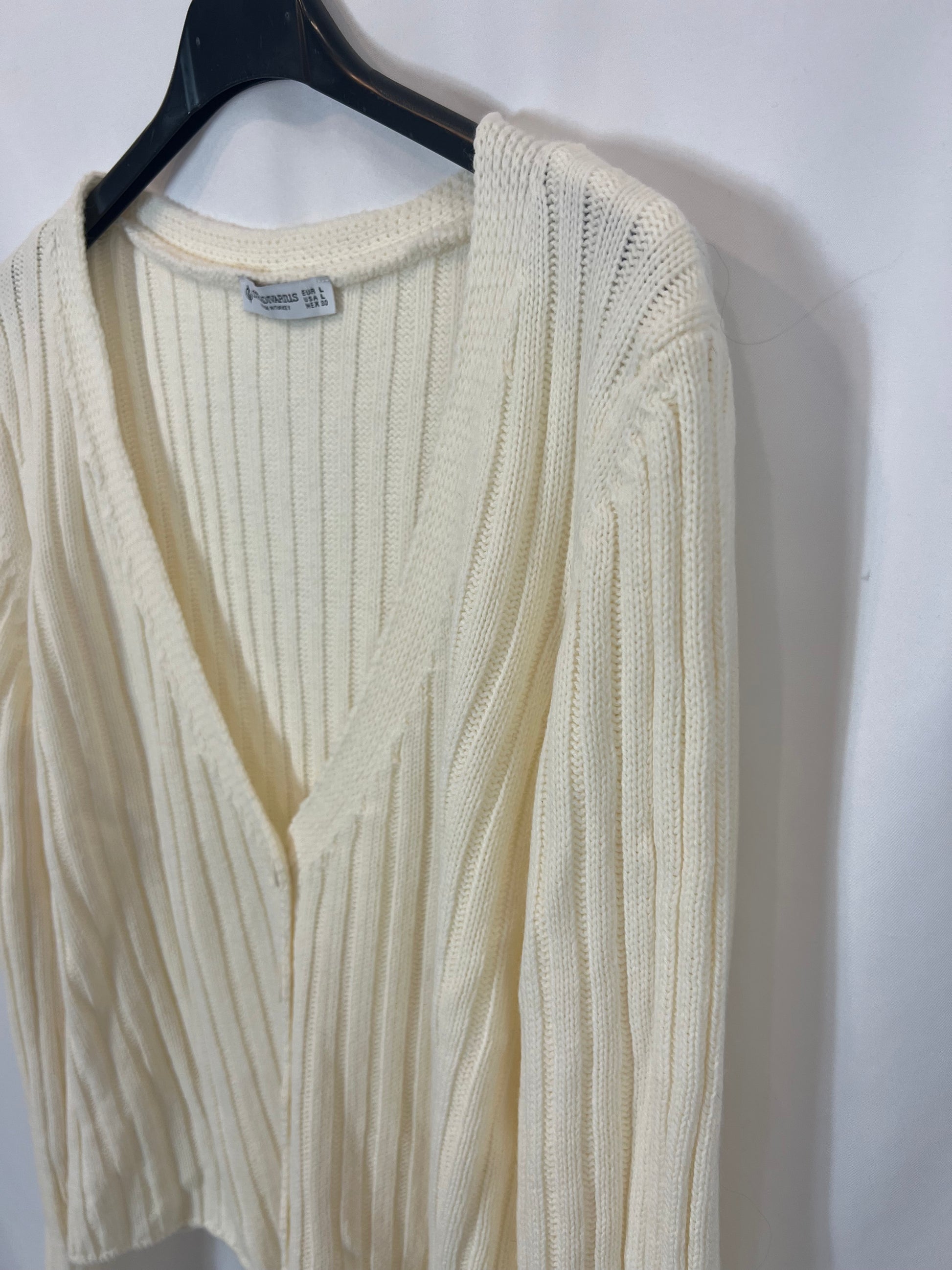 STRADIVARIUS. Cárdigan canalé color crudo. T L