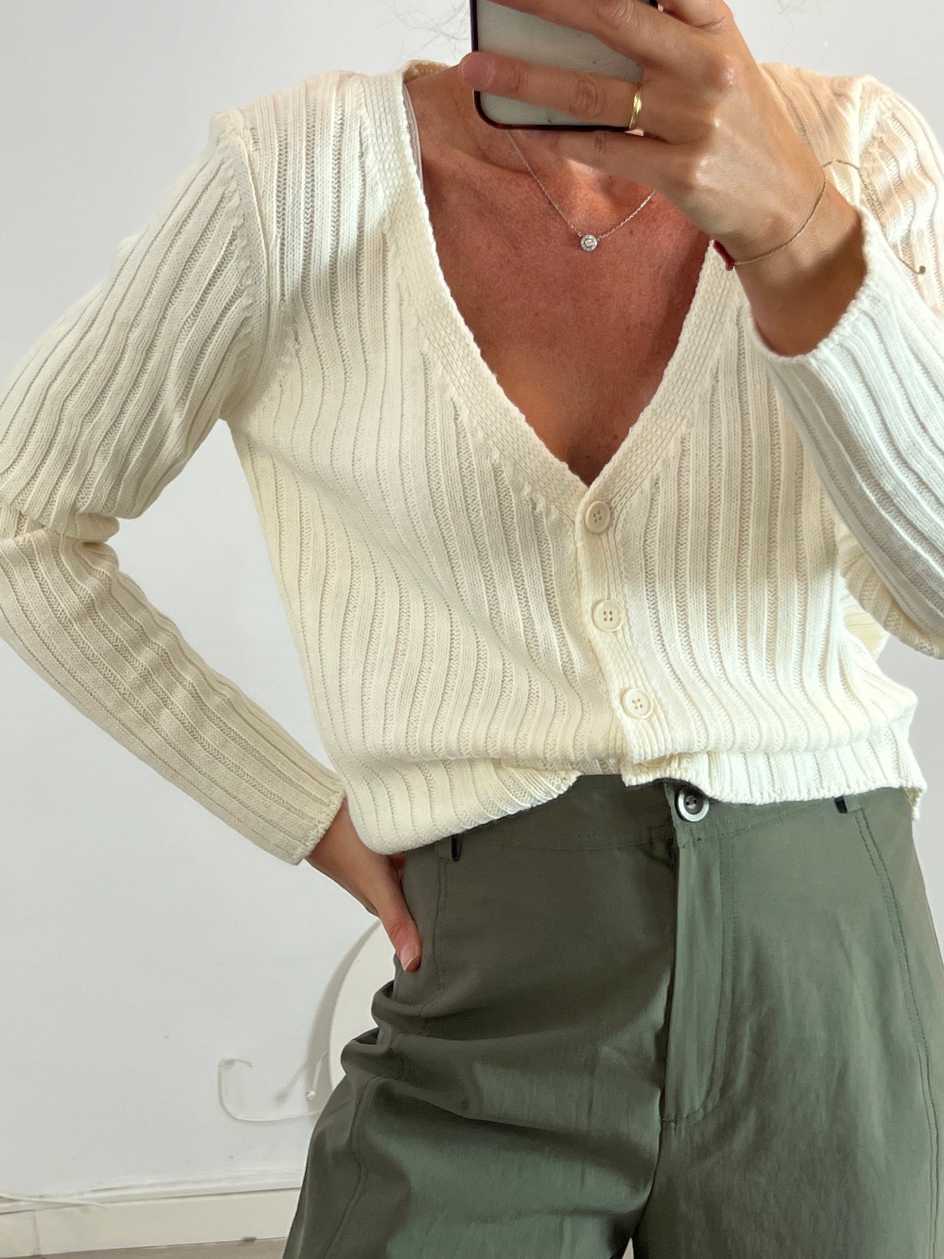 Cárdigan canalé color crudo