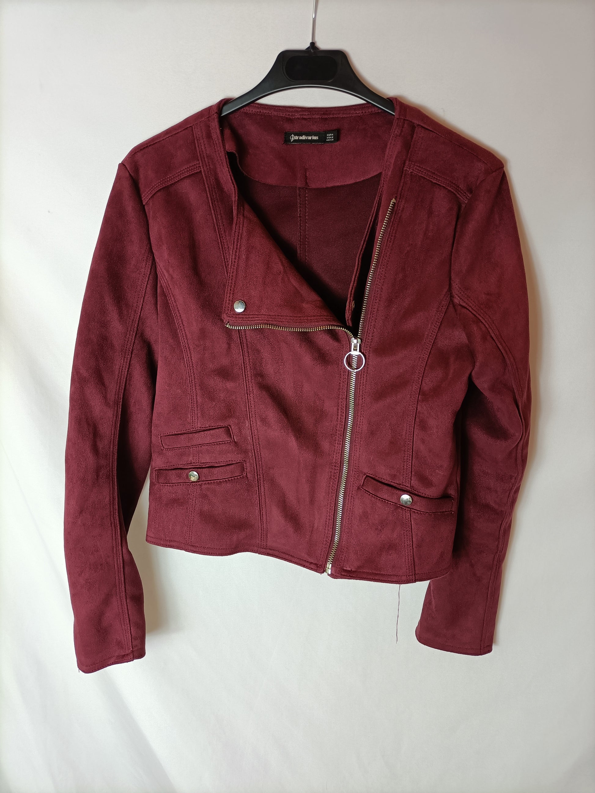 STRADIVARIUS. Chaqueta antelina burdeos T.m