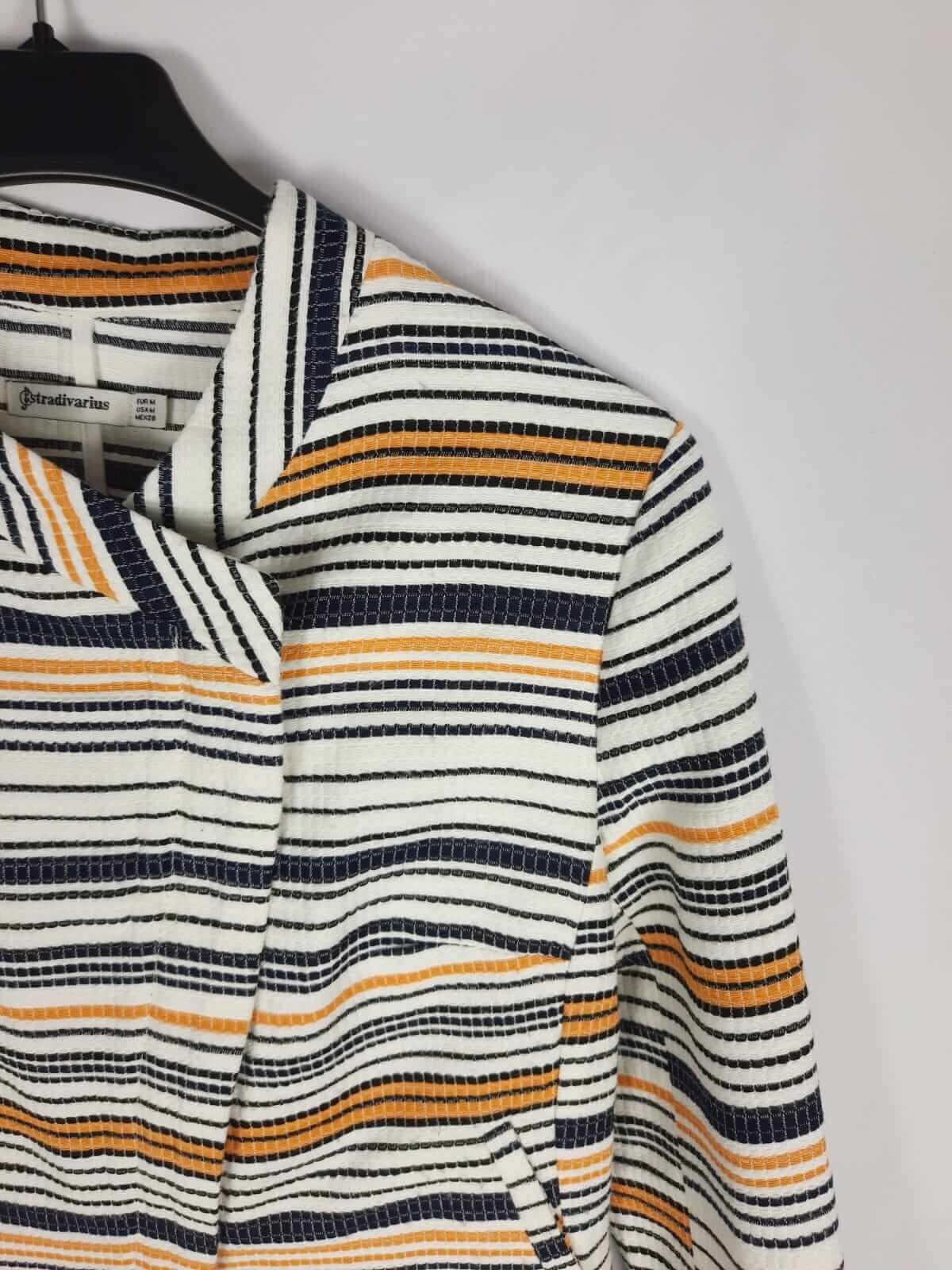 STRADIVARIUS. Chaqueta de rayas en negro y mostaza cremallera T. m