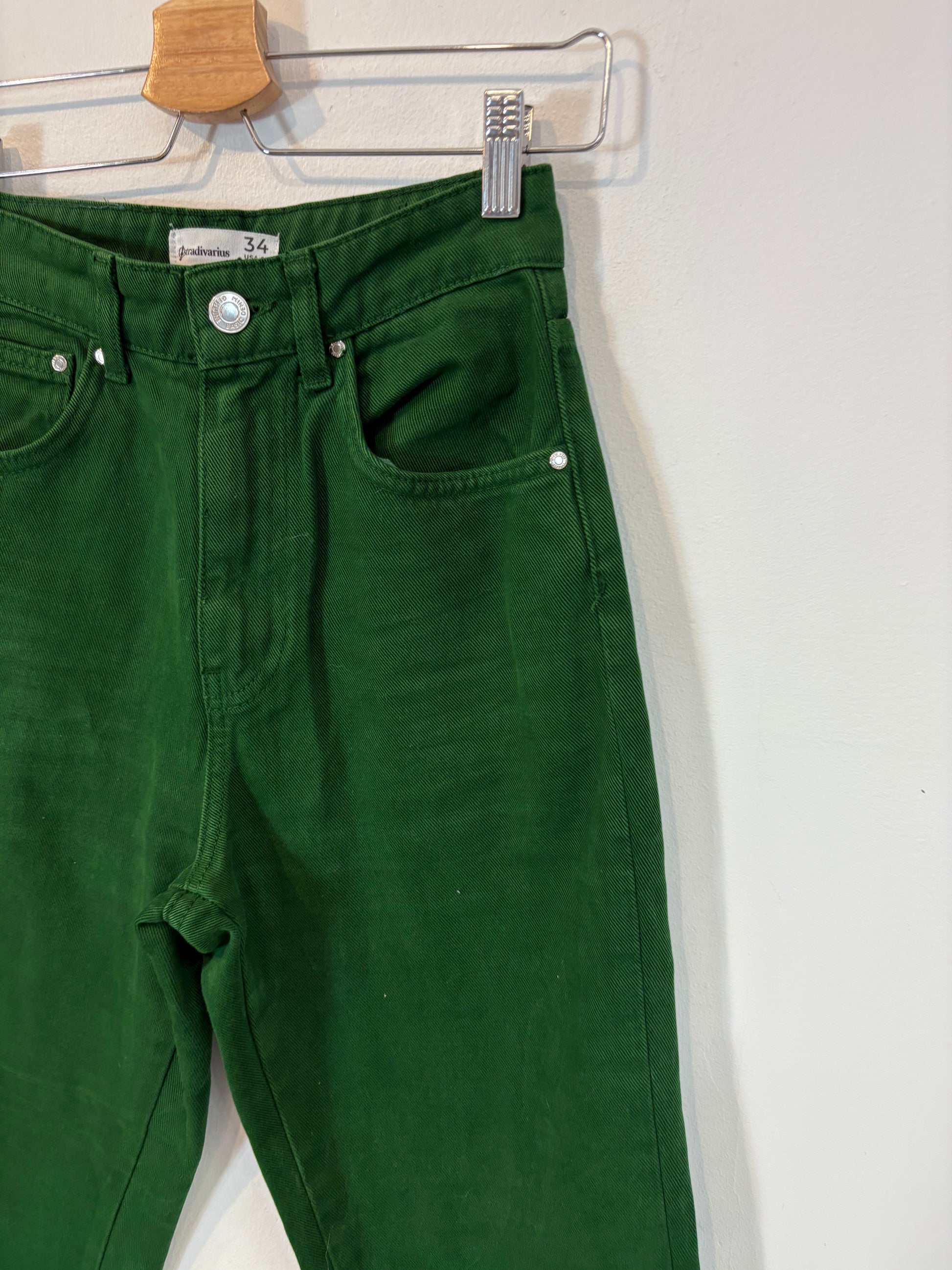 STRADIVARIUS. Denim verde cintura alta. T 34