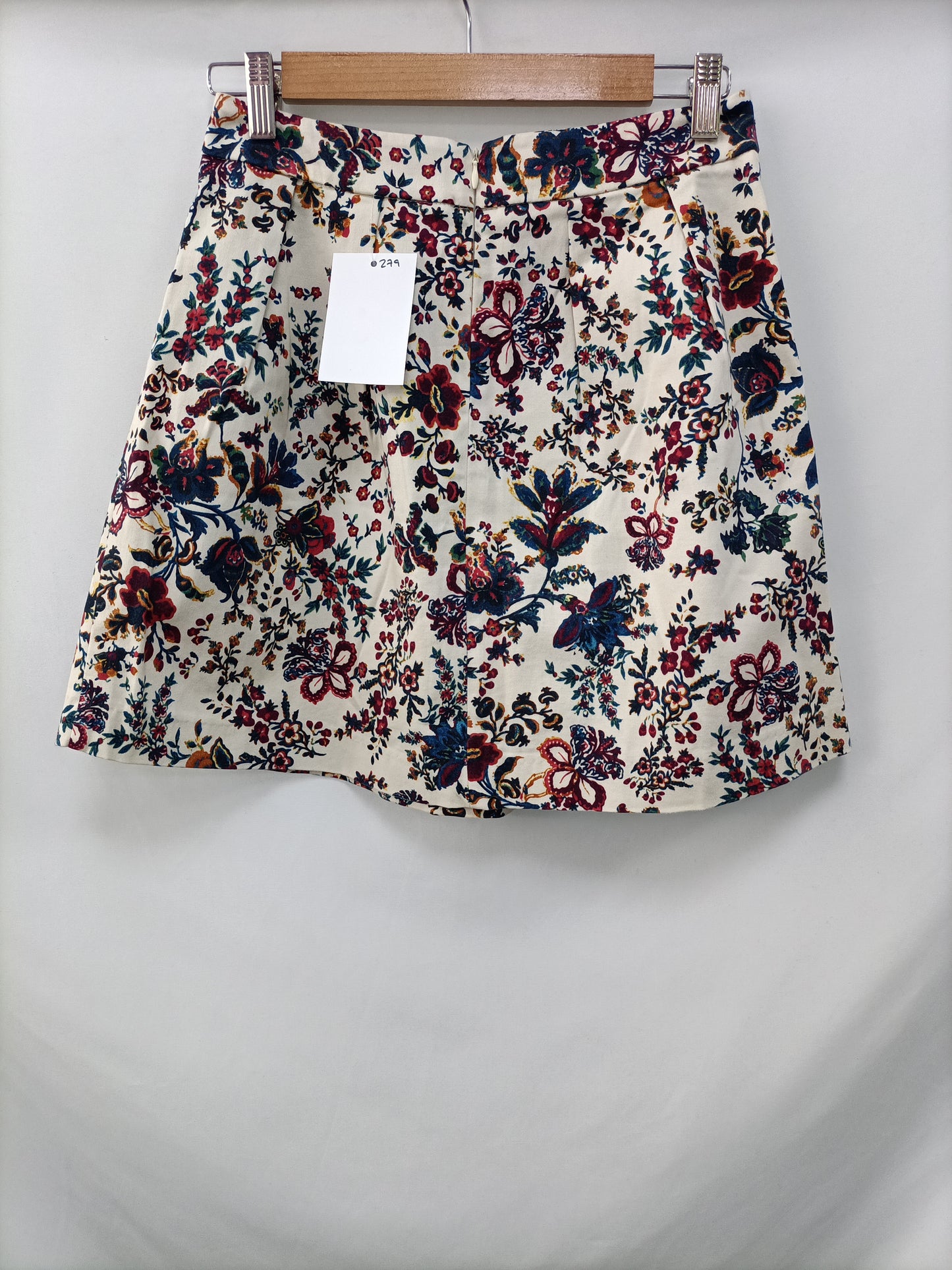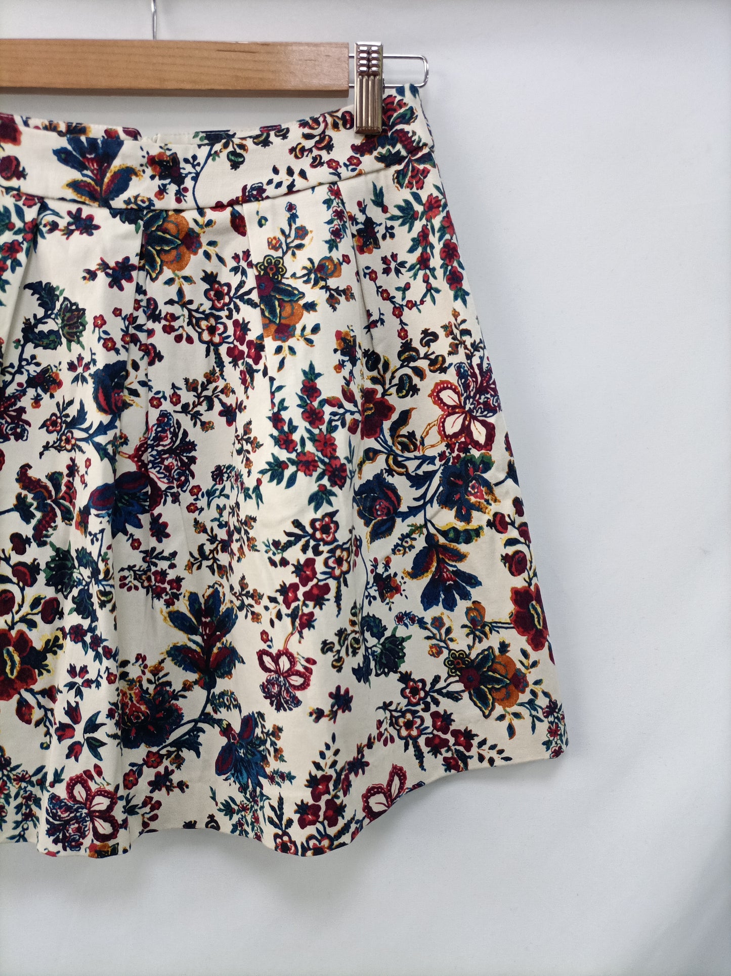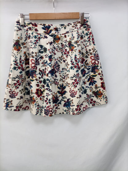 STRADIVARIUS. Falda corta beige flores T.36