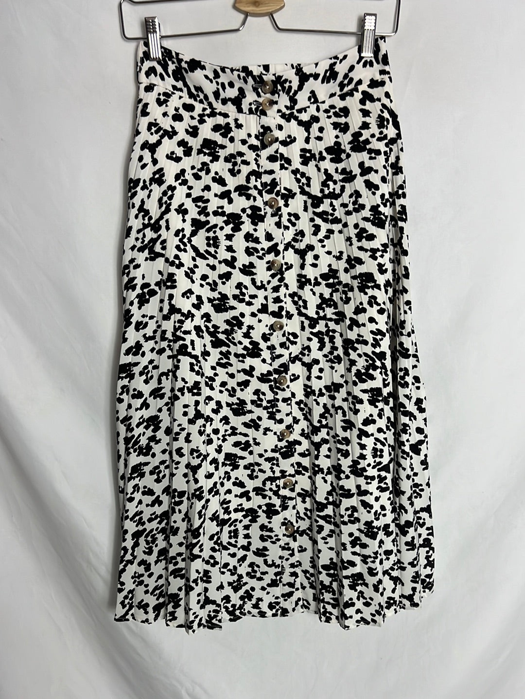 STRADIVARIUS. Falda midi blanca plisada estampada. T S