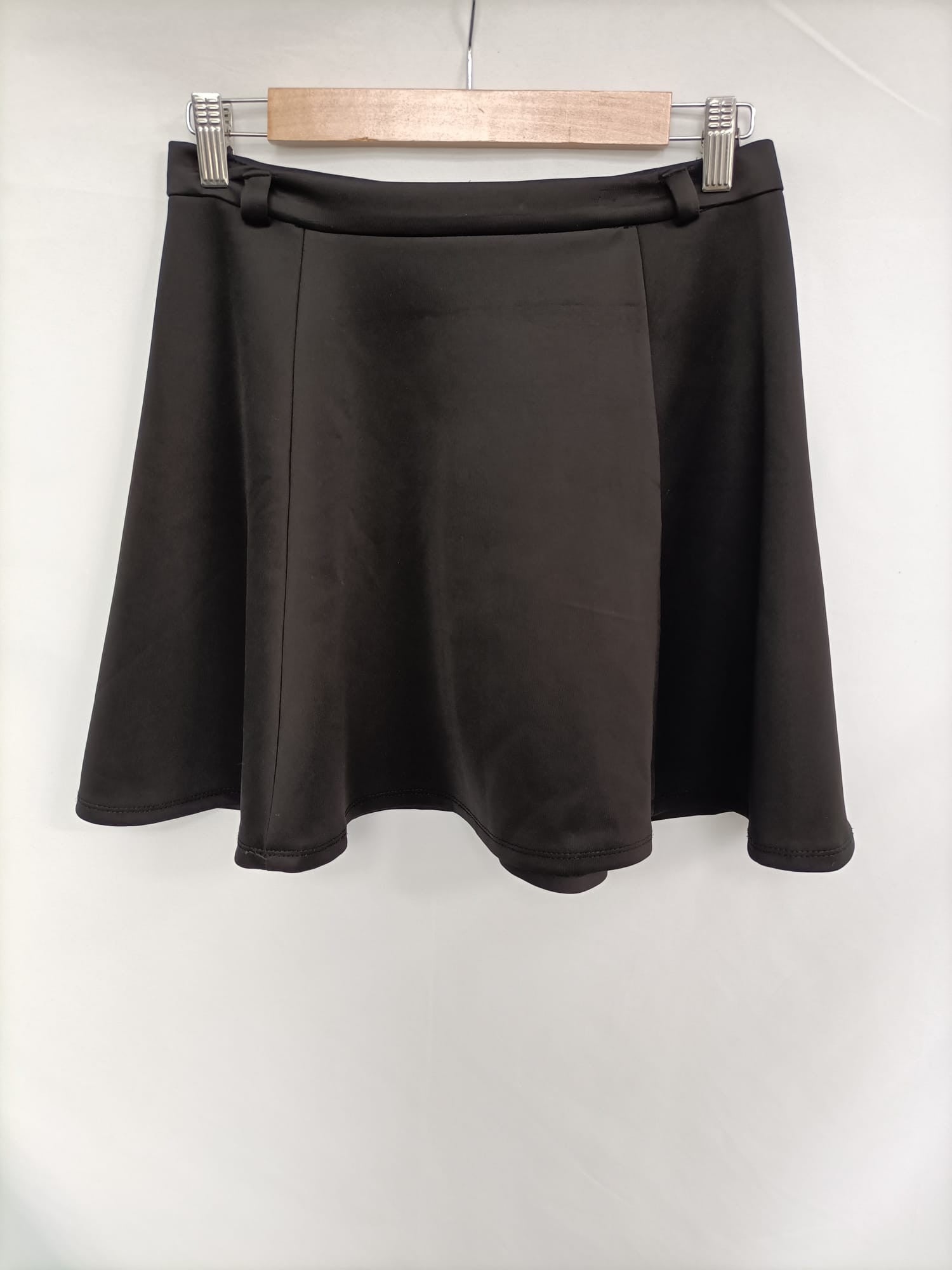Stradivarius. M. Falda corta negra con un poco de vuelo y fluida de tejido de neopreno elástico. Largo 42 cm