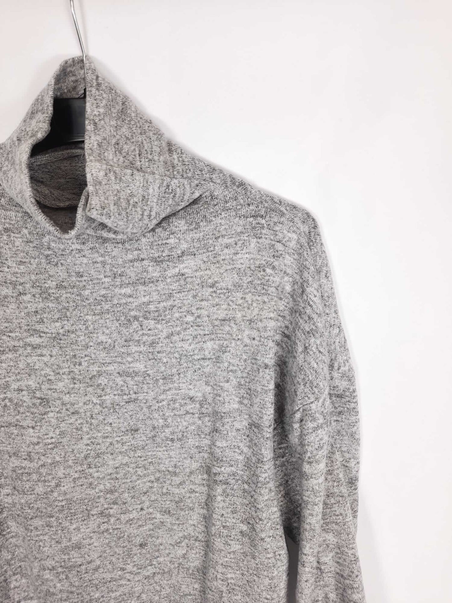 Stradivarius. Jersey gris jaspeado elástico y cuello perkins. Fluido. Largo 60 cm