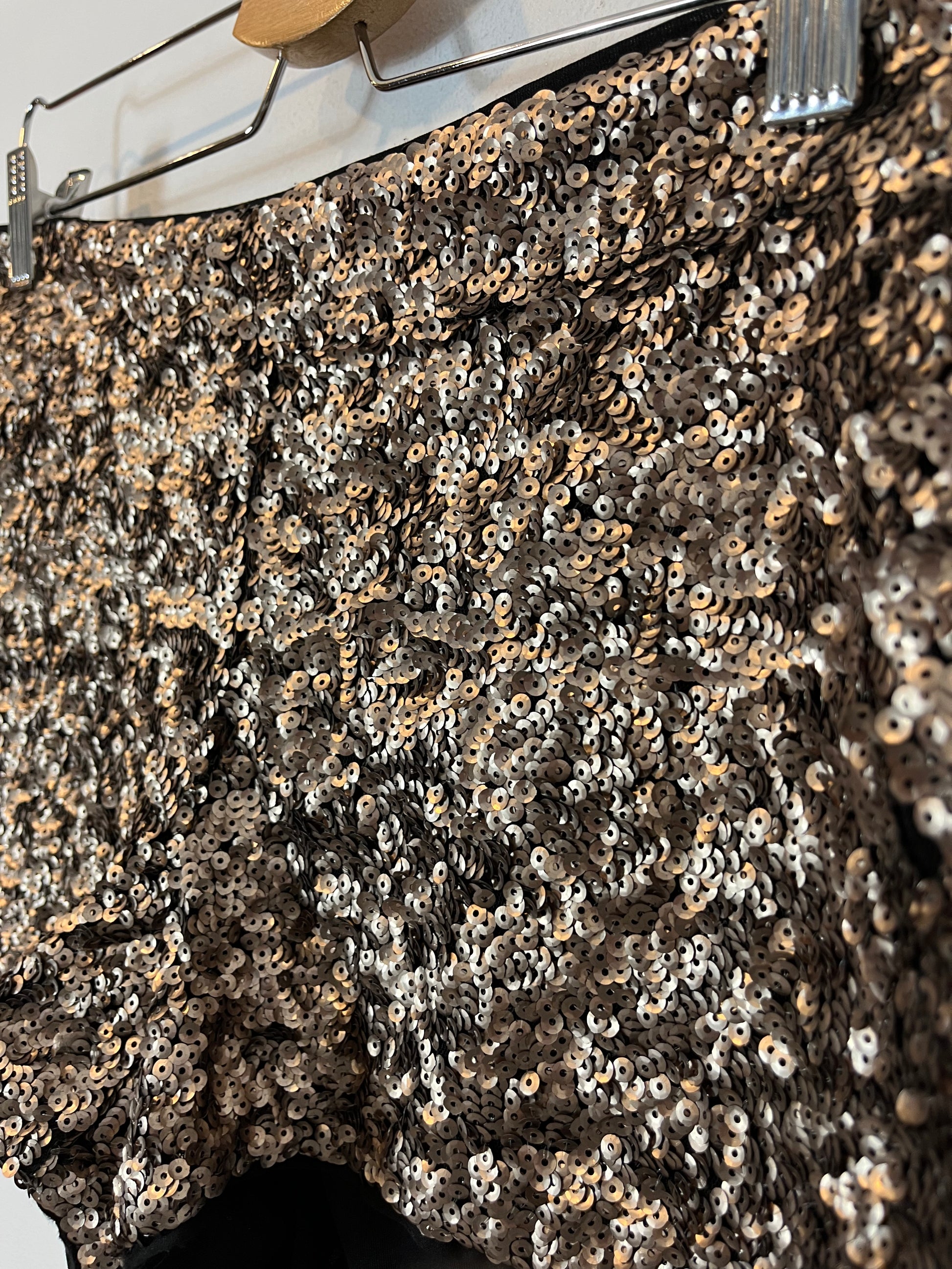 Pantalón corto lentejuelas. Cintura 39 cm semi elástica ,largo 28 cm.
