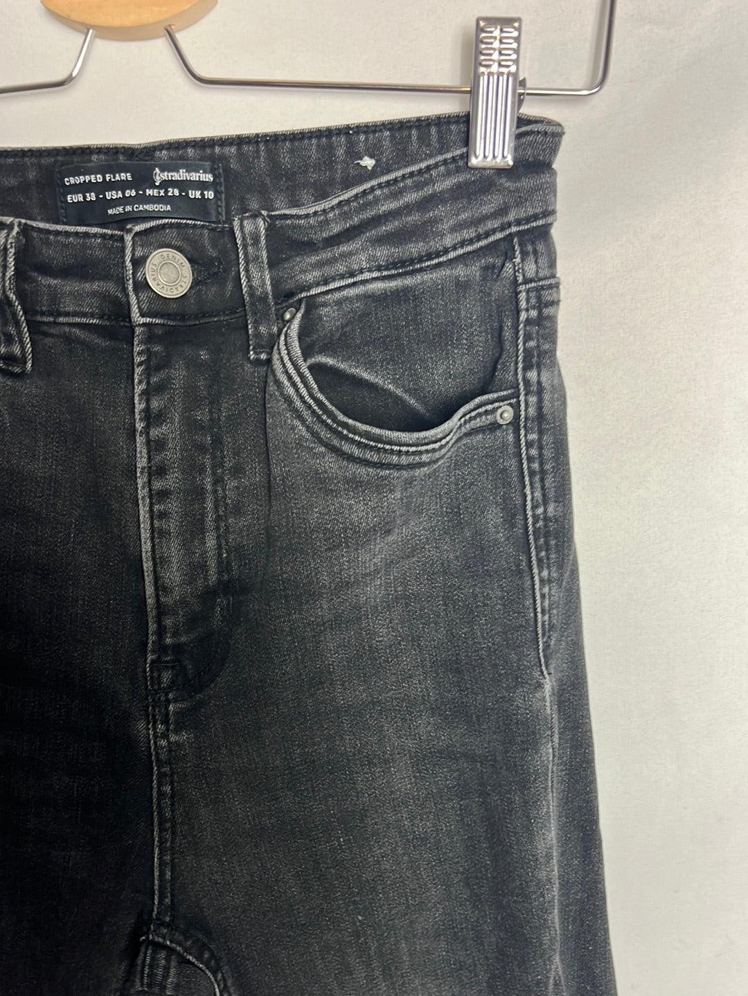 STRADIVARIUS. Pantalón denim negro cropped T.38