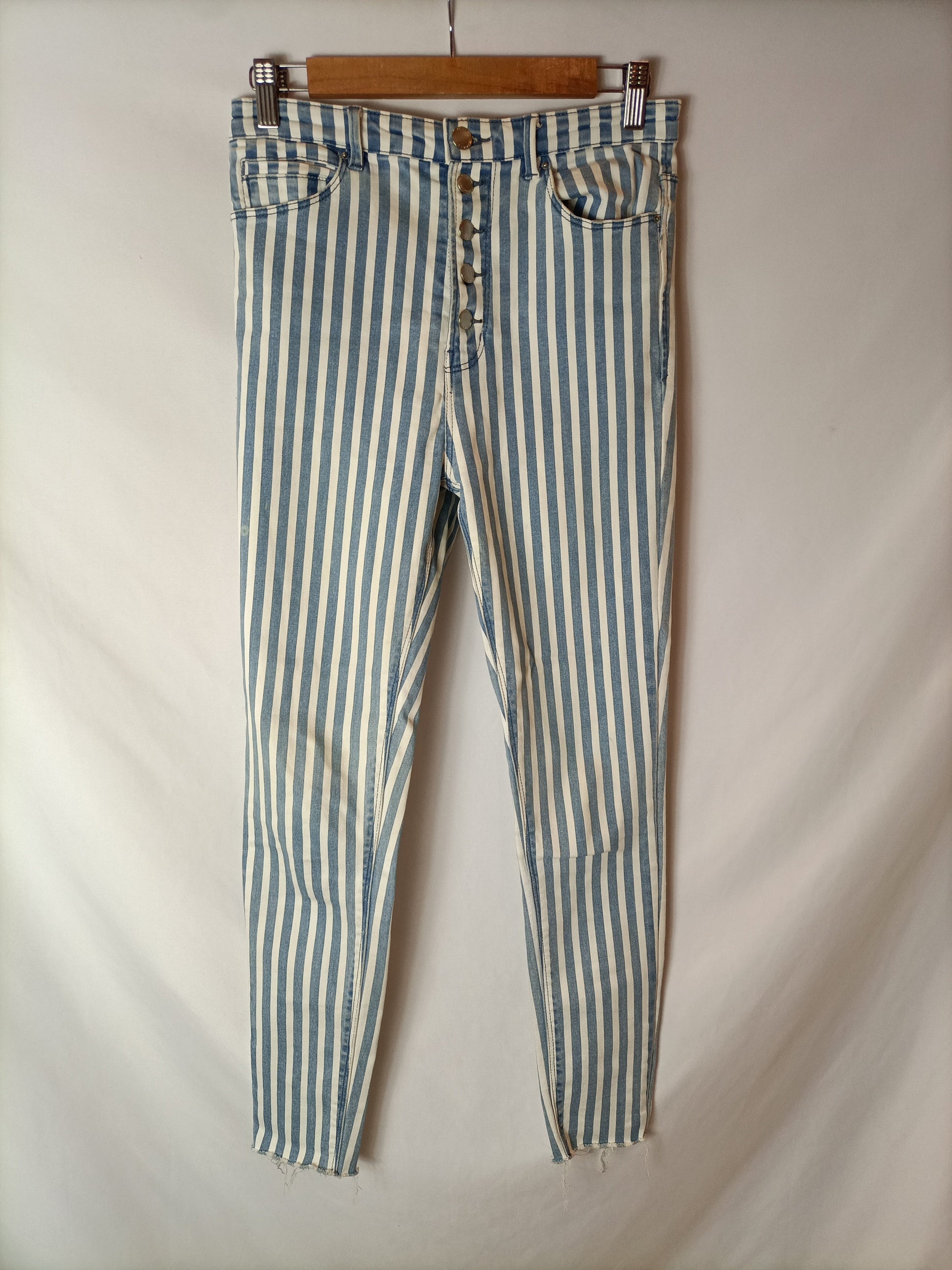 STRADIVARIUS. Pantalones rayas elásticos. T 36