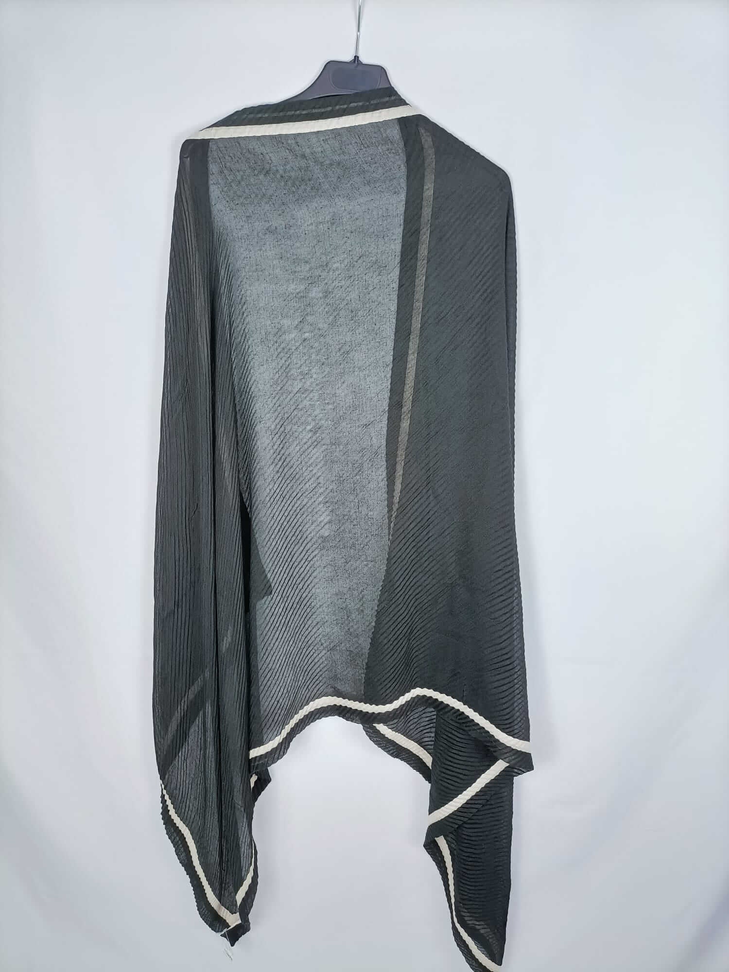 Fular negro plisados con rayas beige.