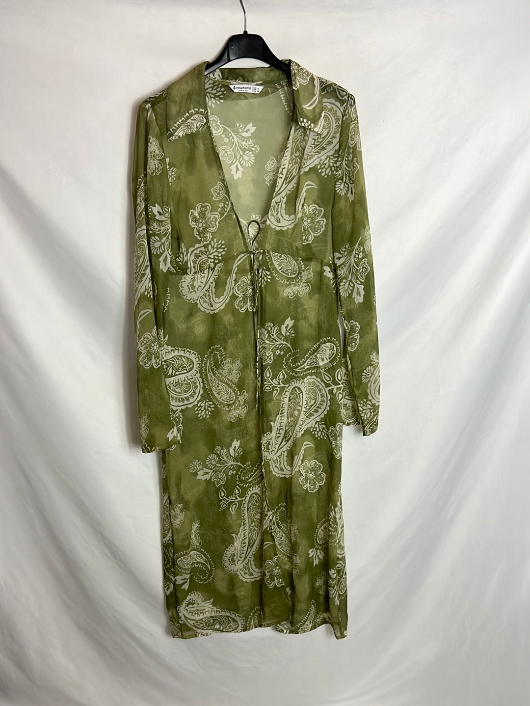 STRADIVARIUS . Sobre camisa semitransparente verde dibujos. T M