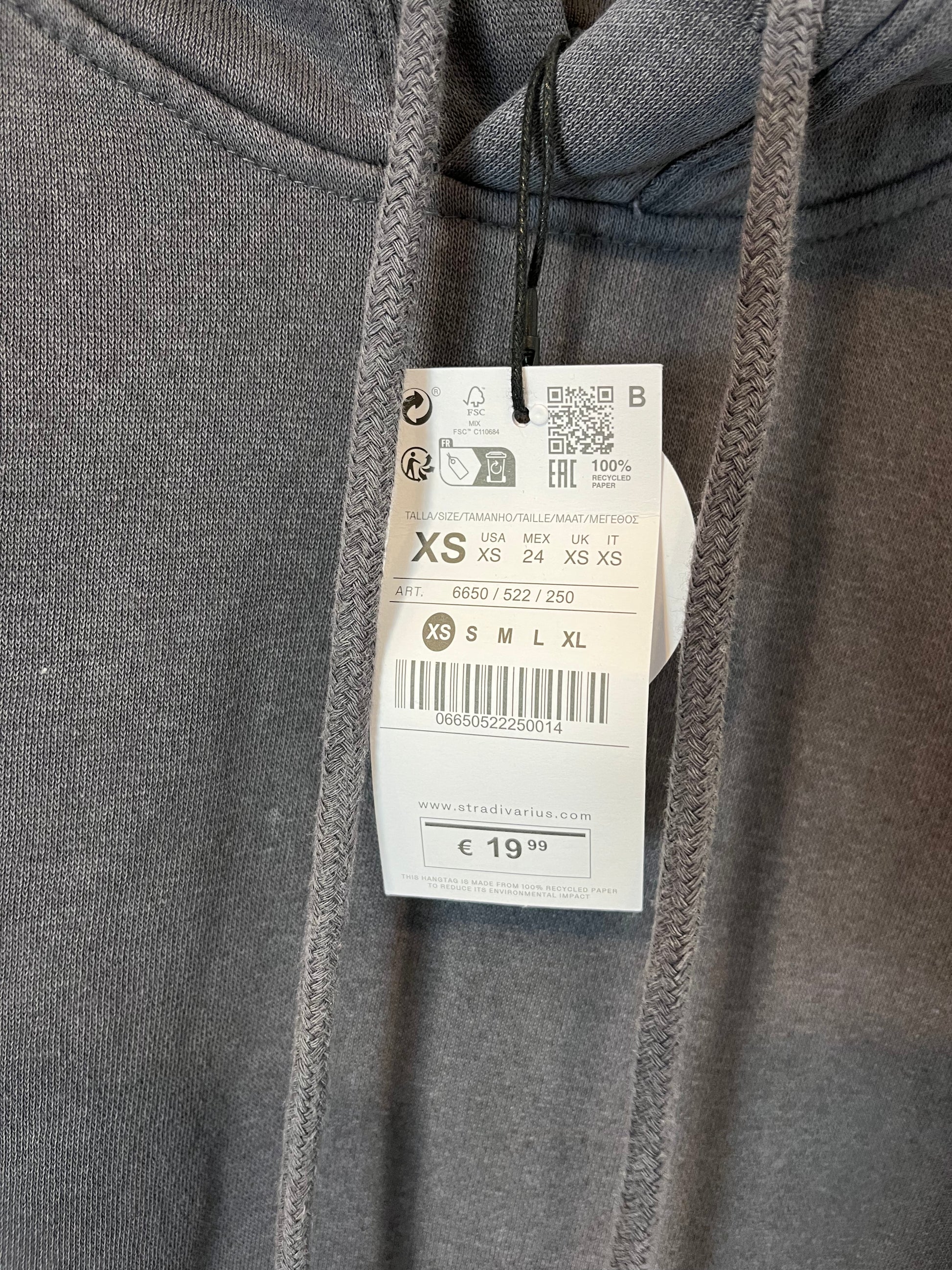 STRADIVARIUS. Sudadera gris oversized. T.xs