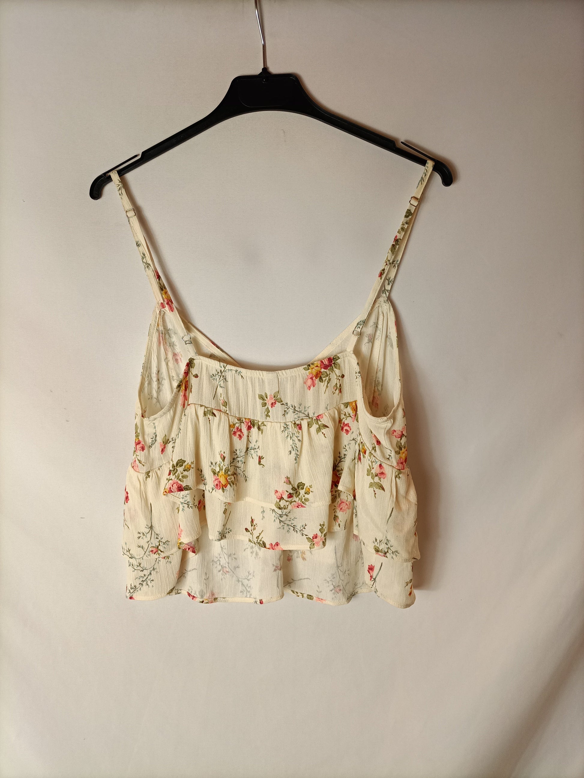 top beige con florecitas. tirantes ajustables y espalda semielástica.