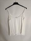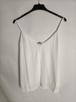 top blanco básico de tirantes con detalle de botones en el escote. tirantes ajustables.