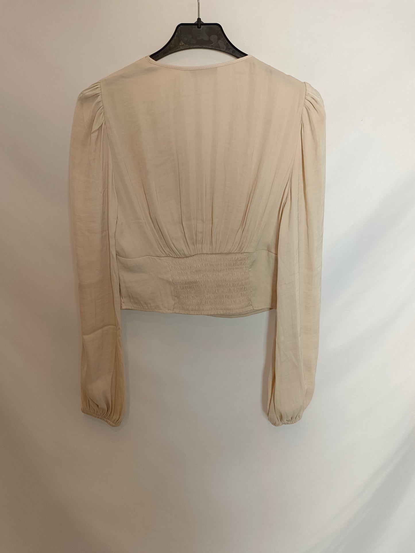 top beige lencero con detalles de encaje.