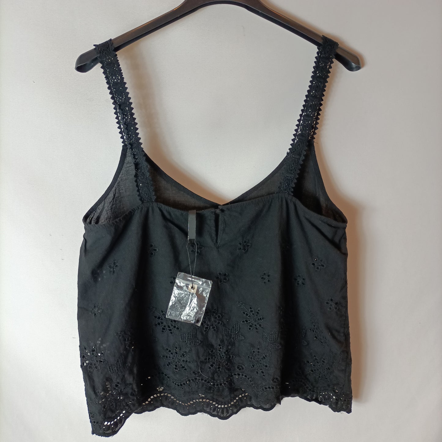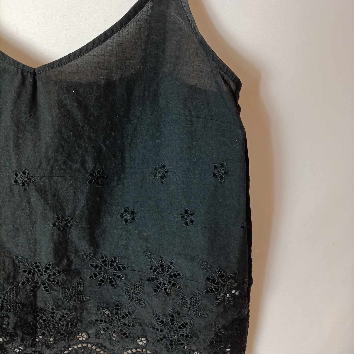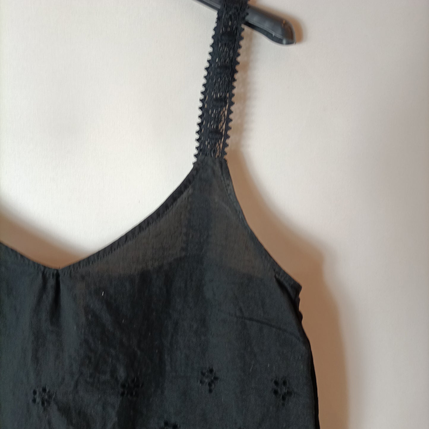 top negro de tirantes troquelado. de sisa a sisa 43 cm