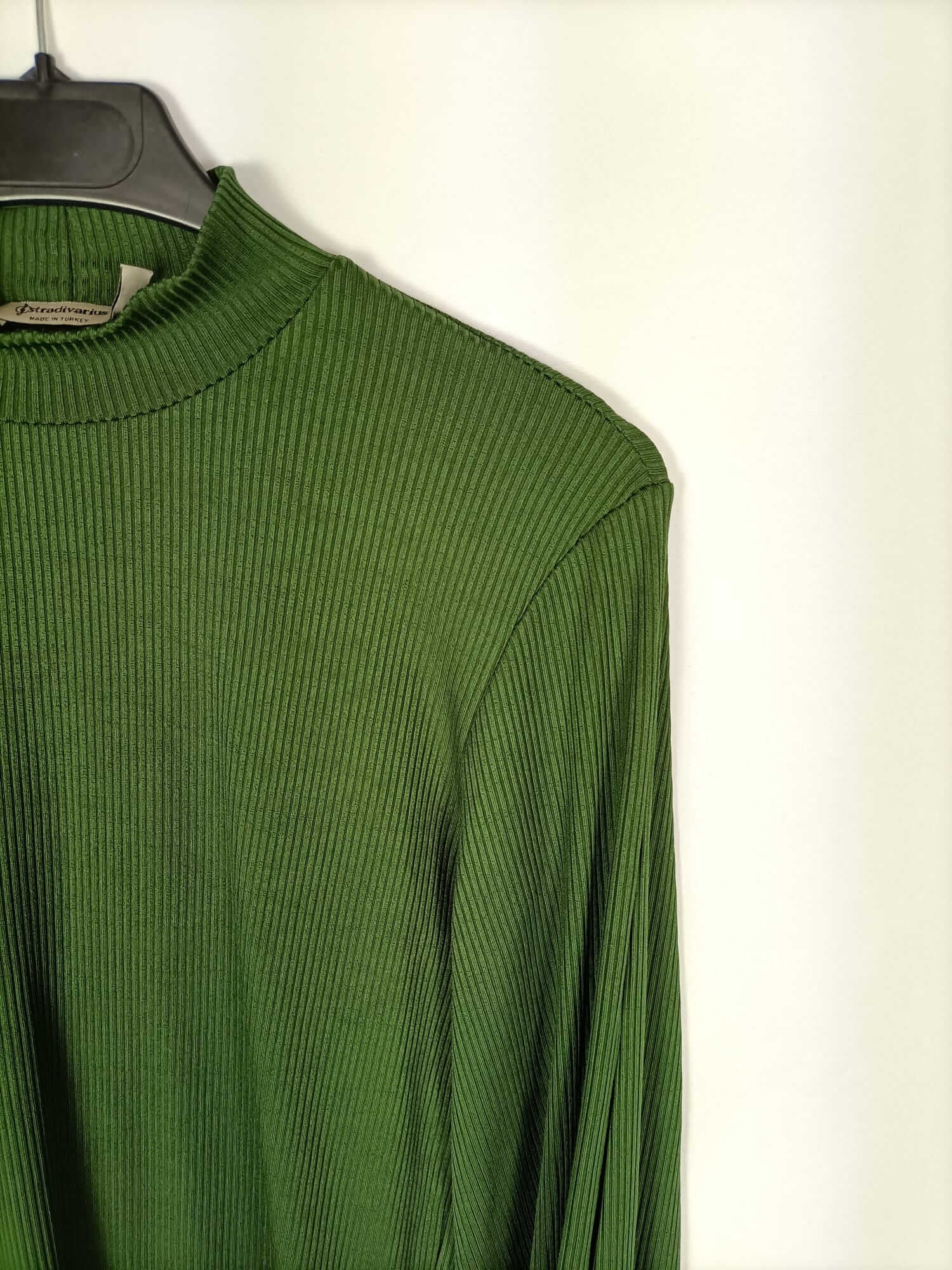 STRADIVARIUS. Top verde canalé T.s