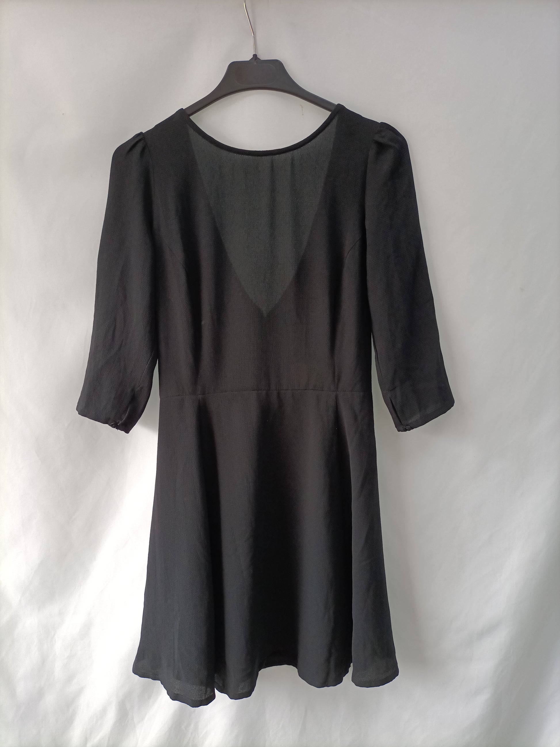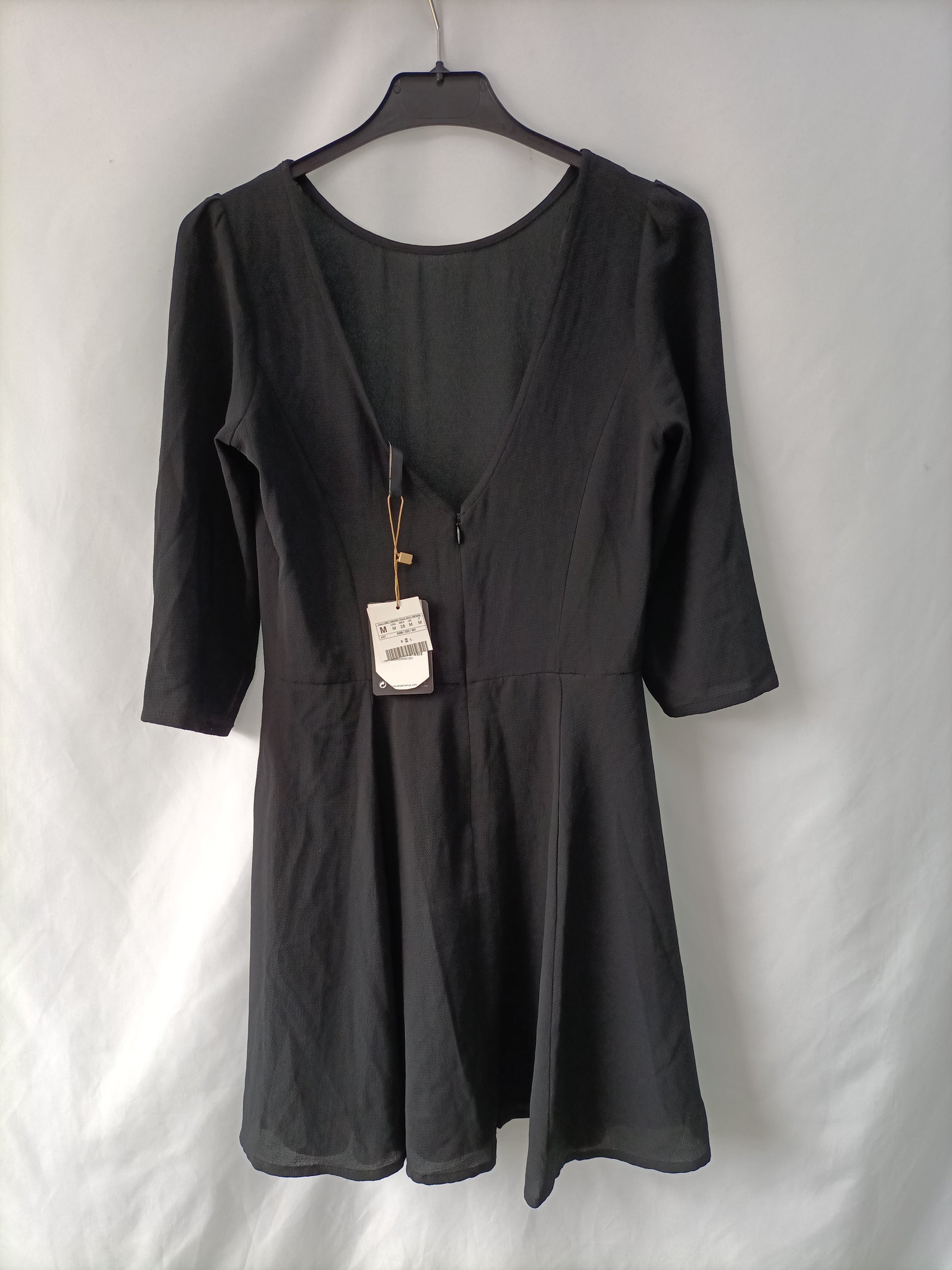 STRADIVARIUS. Vestido negro manga 3/4 T.M