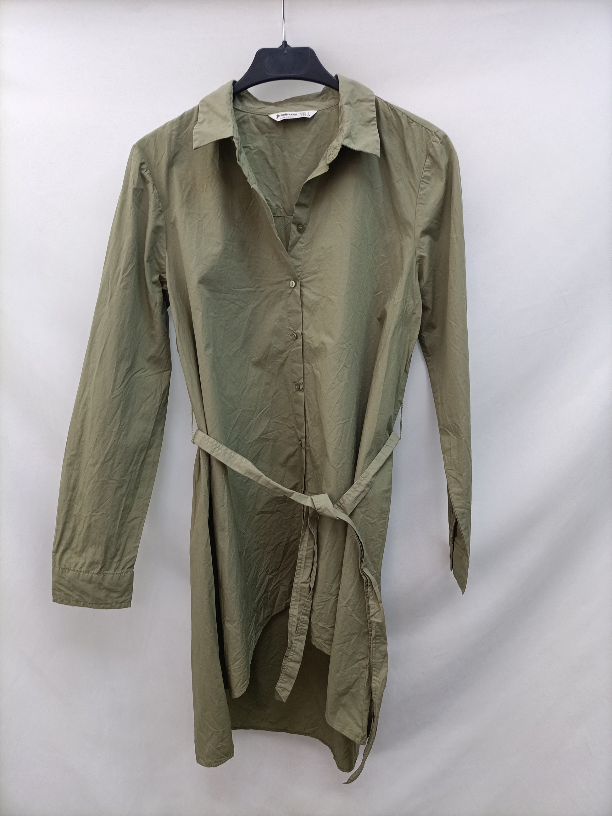 Vestido corto camisero, largo asimétrico. De sisa a sisa 50 cm largo trasero 96 cm