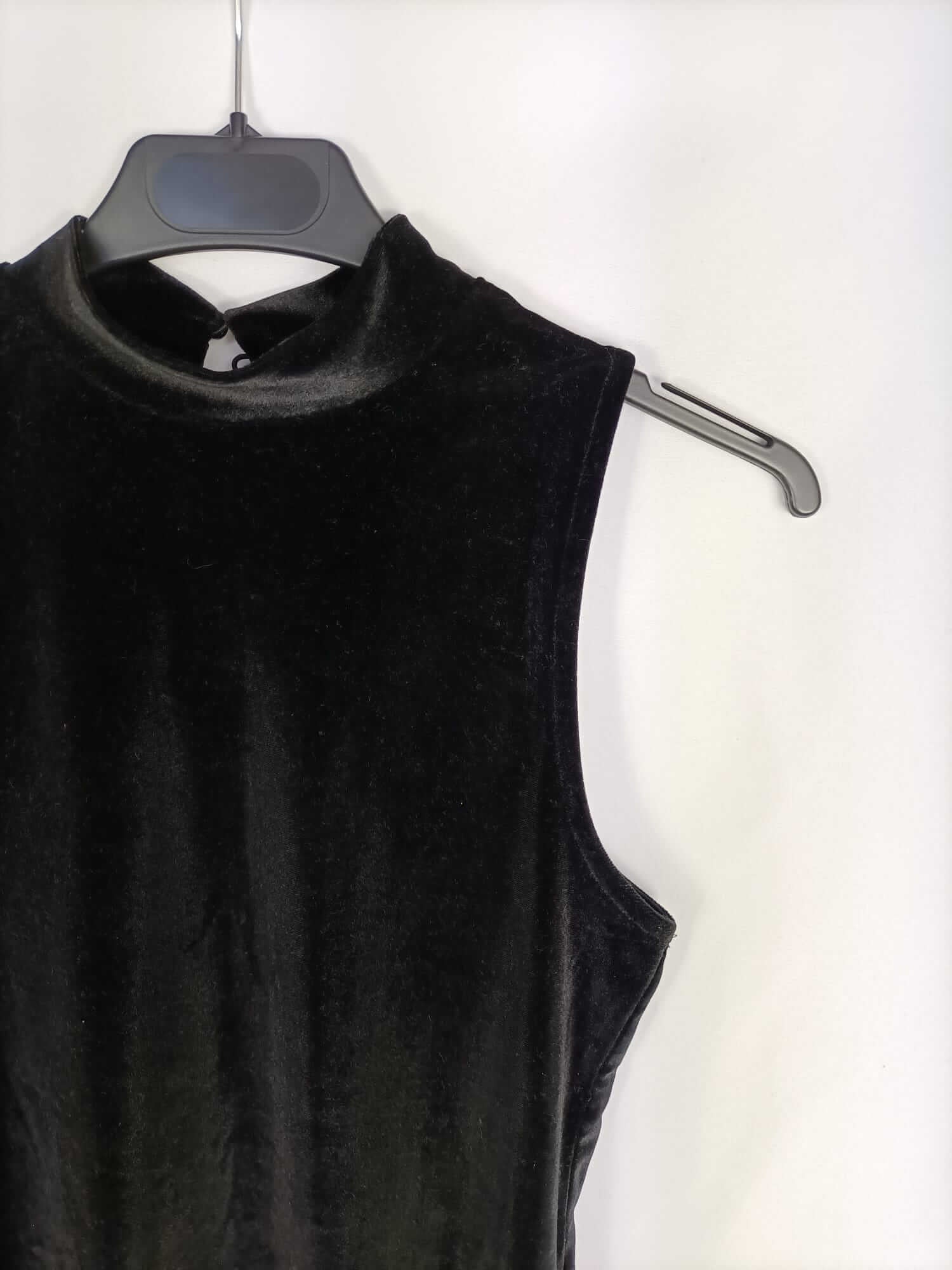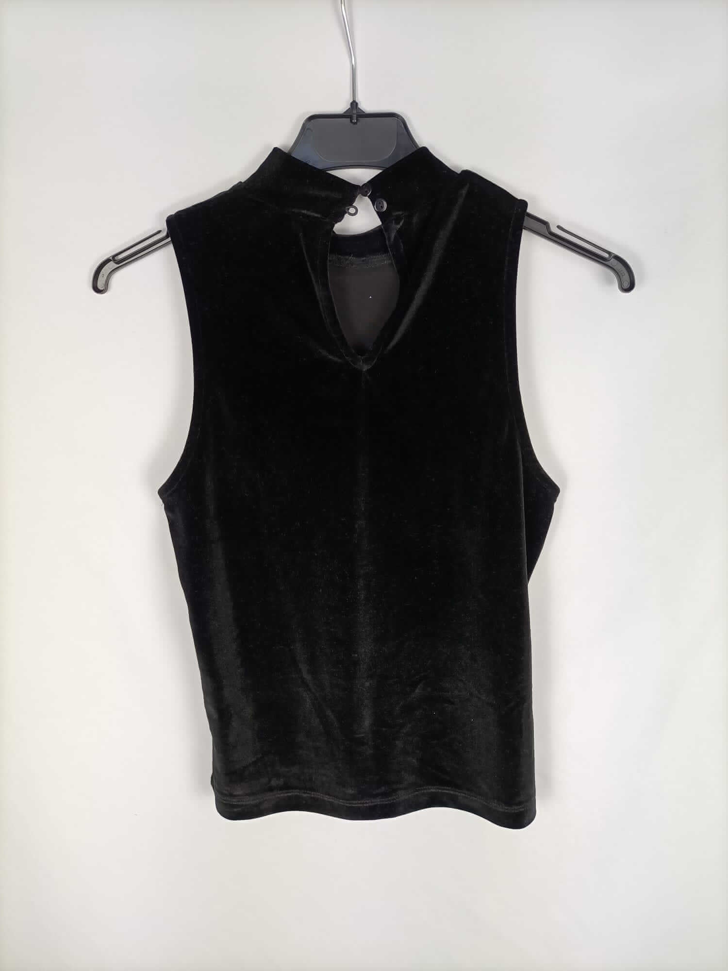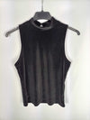 Top negro de terciopelo con cuello vuelto y sin mangas.