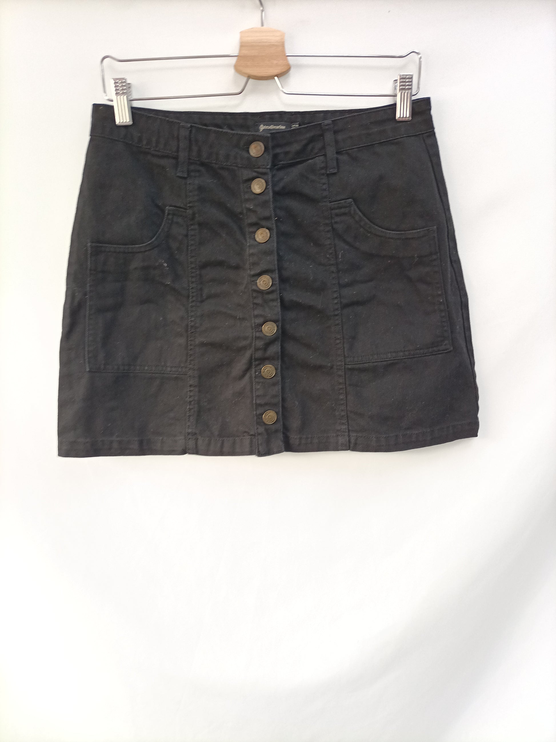 Falda negra abotonada. No elástica. Cintura 38 cm largo 42 cm