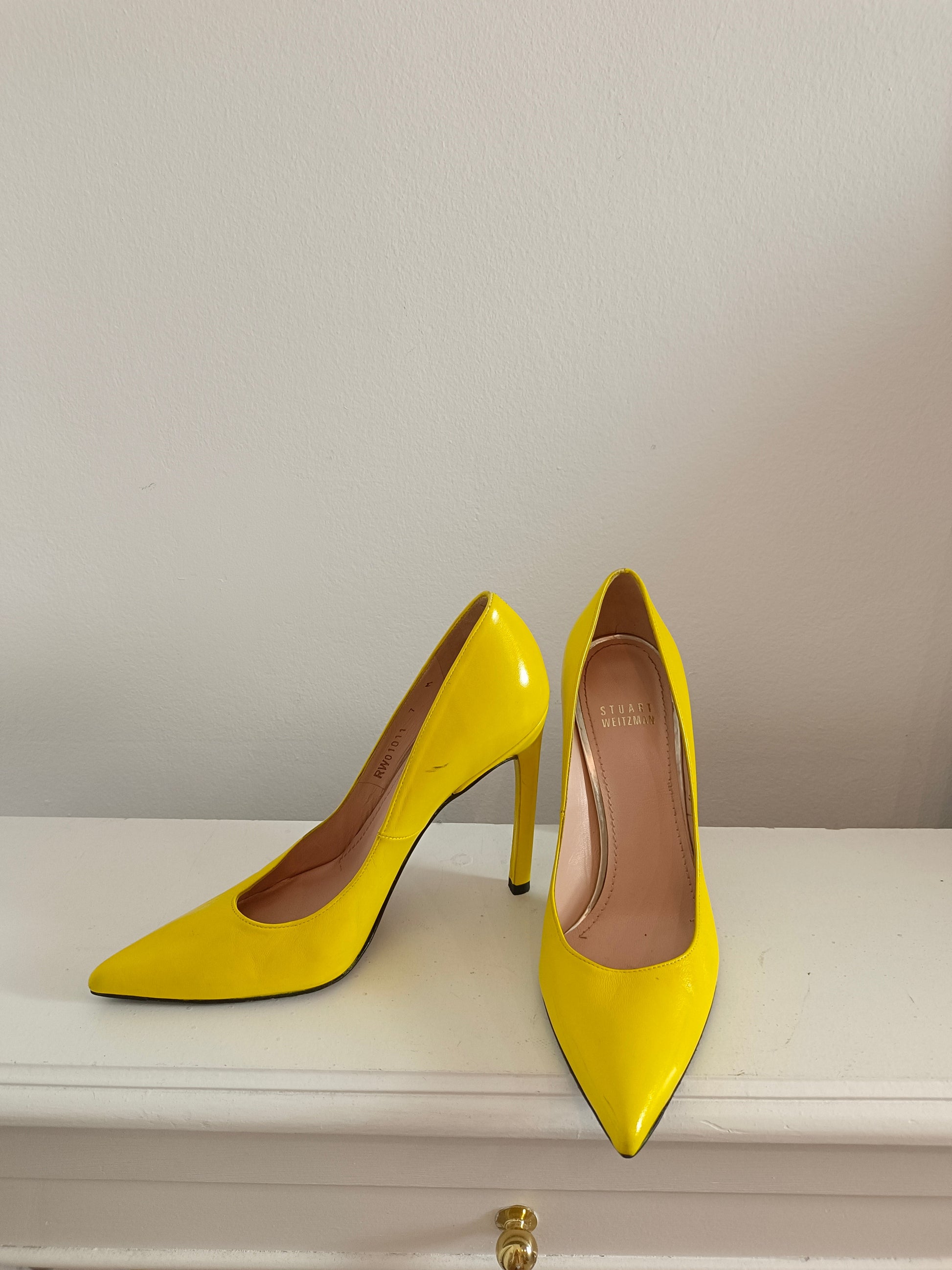 STUART WEITZMAN. Stilettos amarillos piel T.37