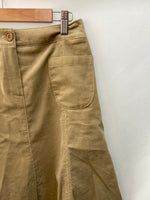Falda camel de pana fina. No es elástica con un poco de vuelo. Cintura 38 cm y Largo 55 cm