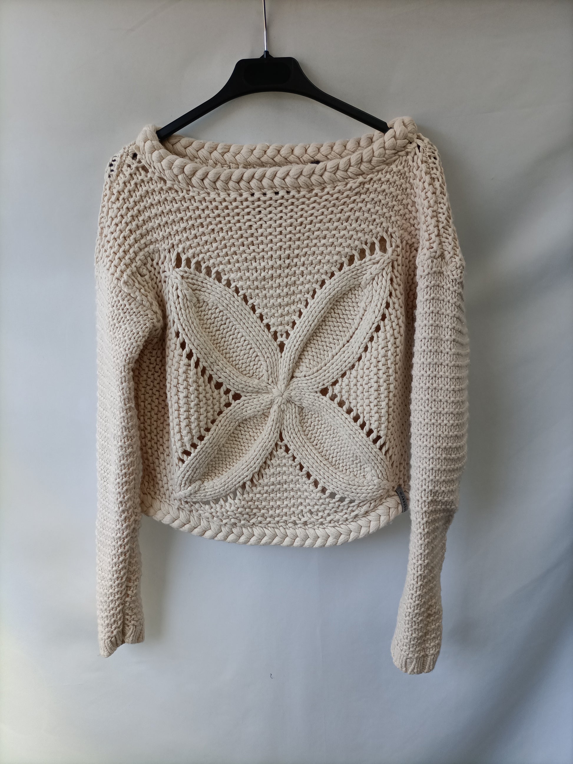 Superdry. Jersey de punto gordito con dibujo central. Cortito y elástico. Largo 44 cm