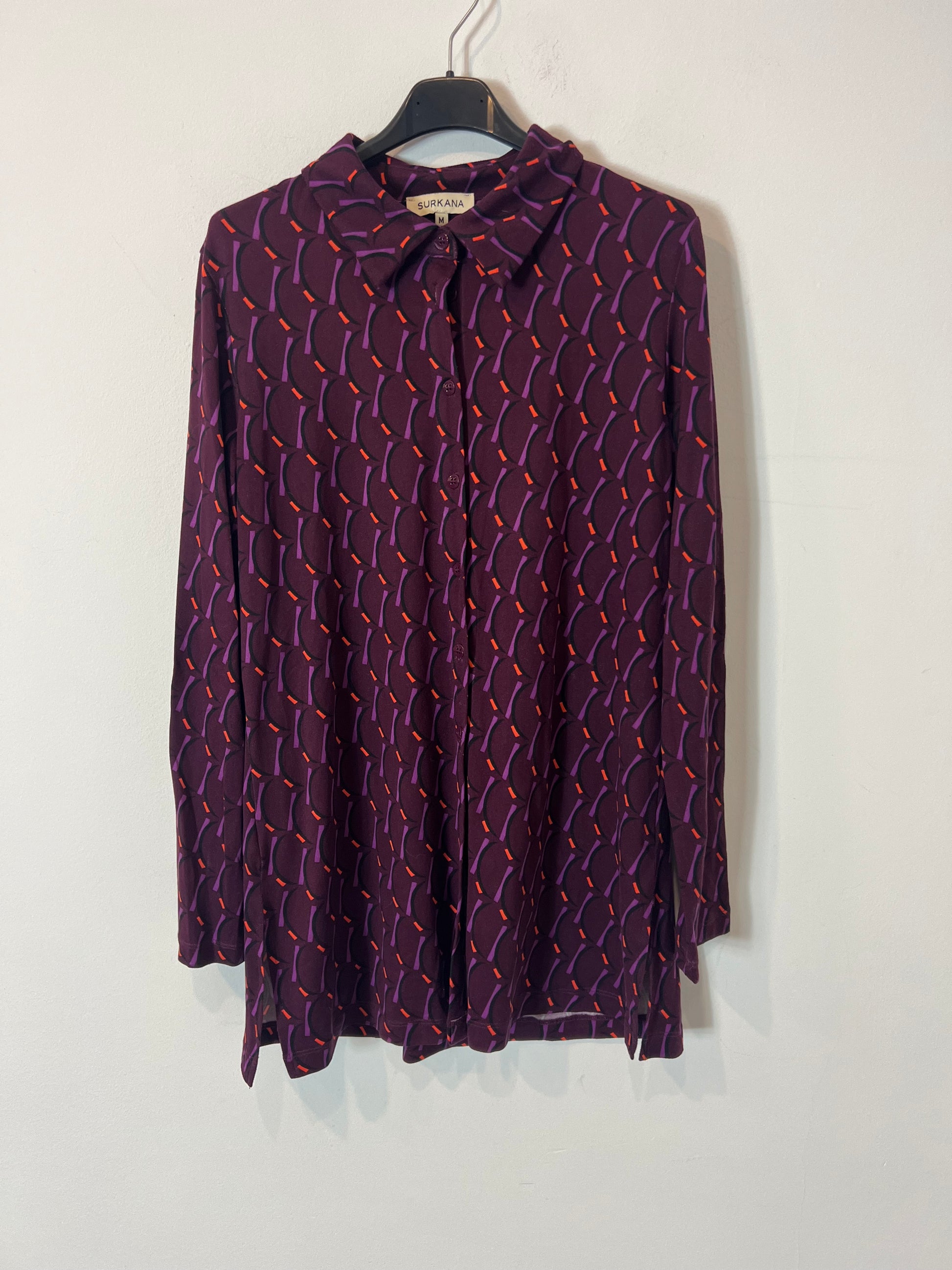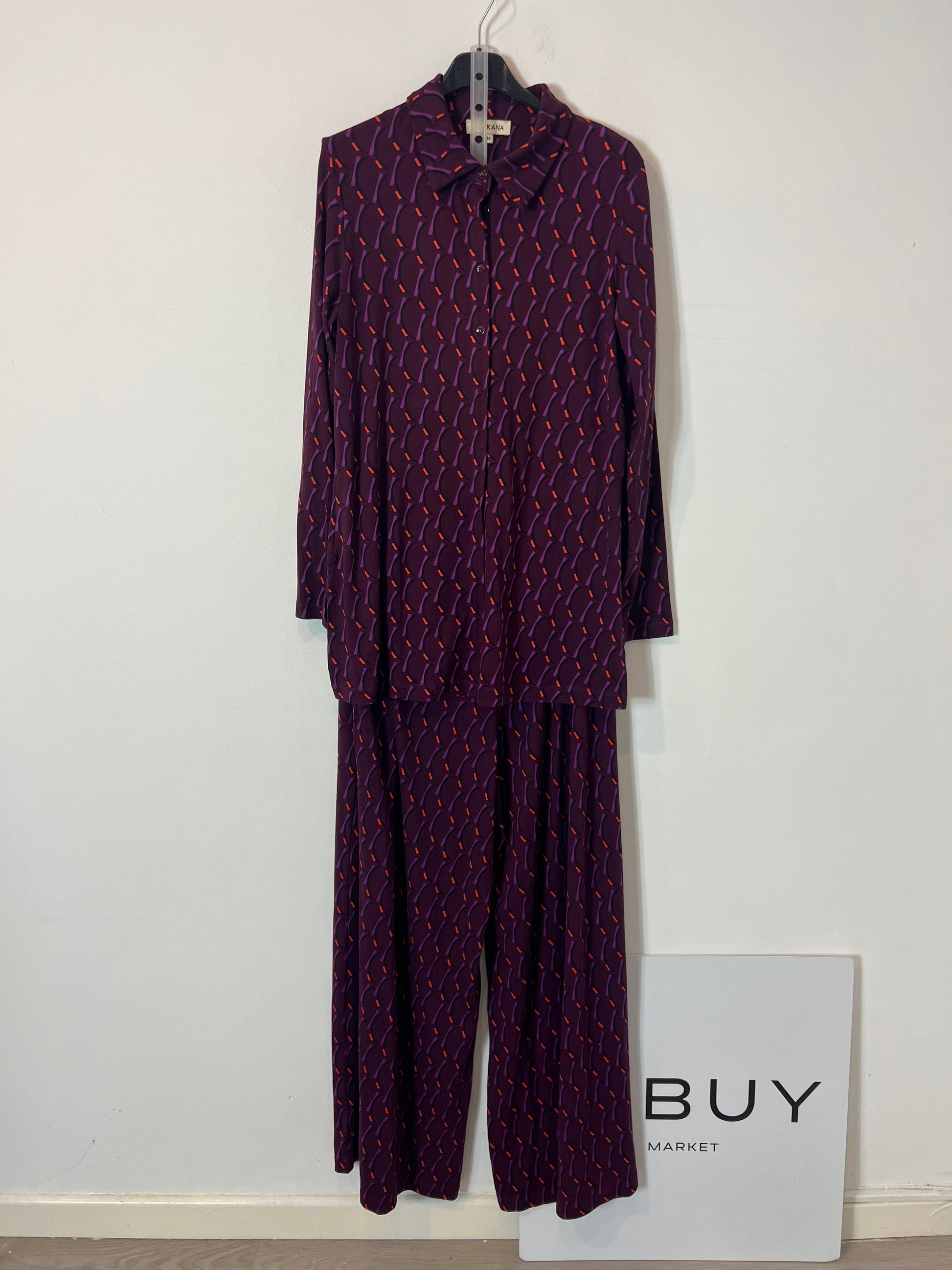 Total look morado estampado retro elástico. Pantalón: cintura 38cm elástica, largo 104cm. Top: de sisa a sisa 54cm, largo 73cm