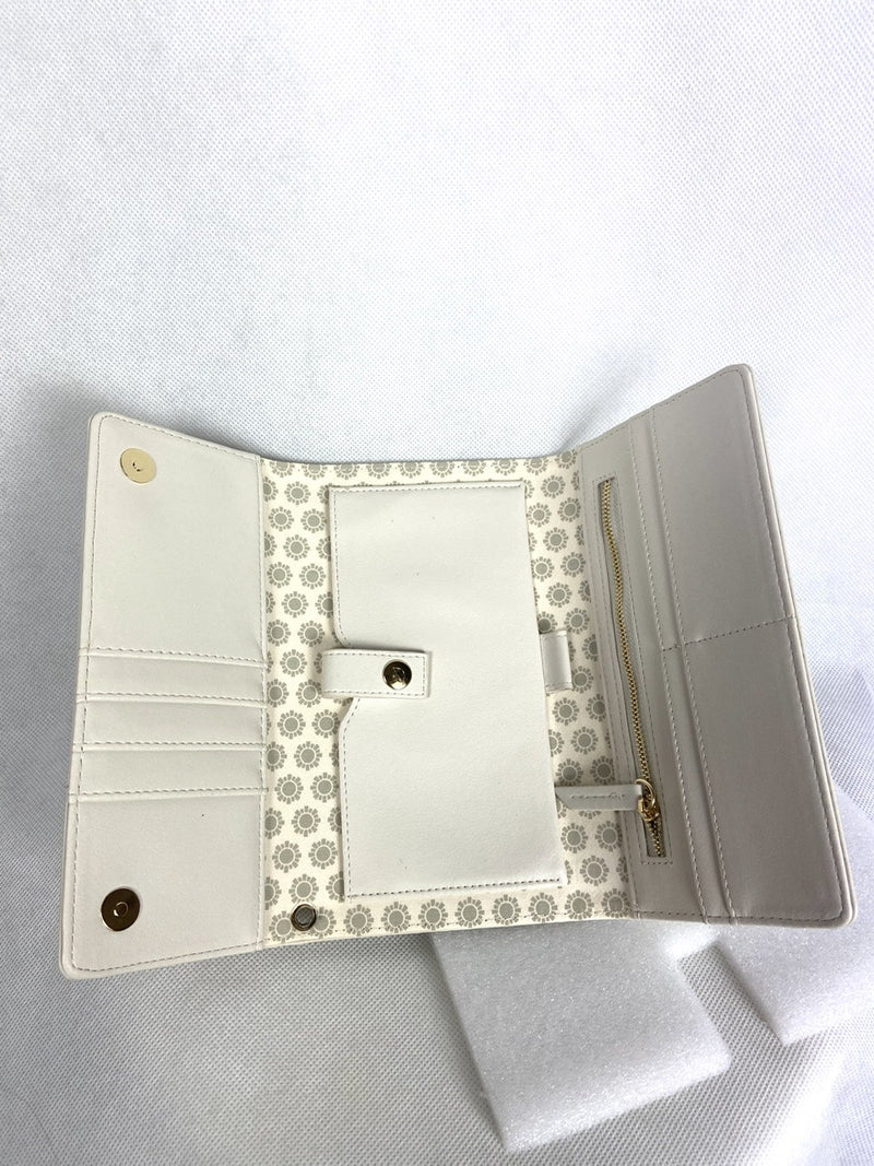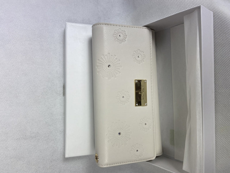 Cartera blanco roto con cristales, está nueva sin estrenar. Alto 12 cm, largo 20 cm y profundo 3 cm.