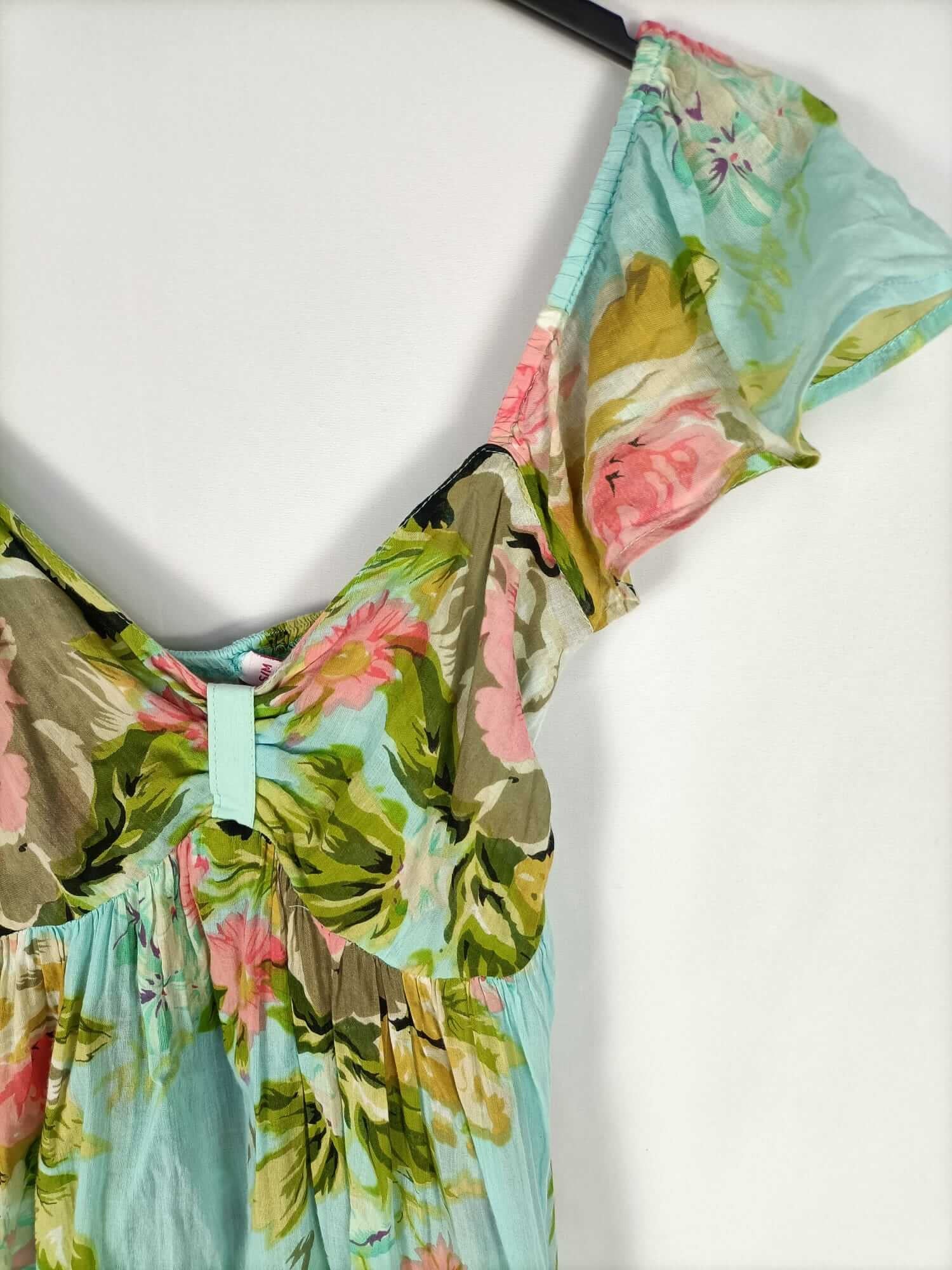 Sweet dreams. S/m. turquesa con flores escote corazón. Espalda elástica. Muy fluido. Largo 79 cm