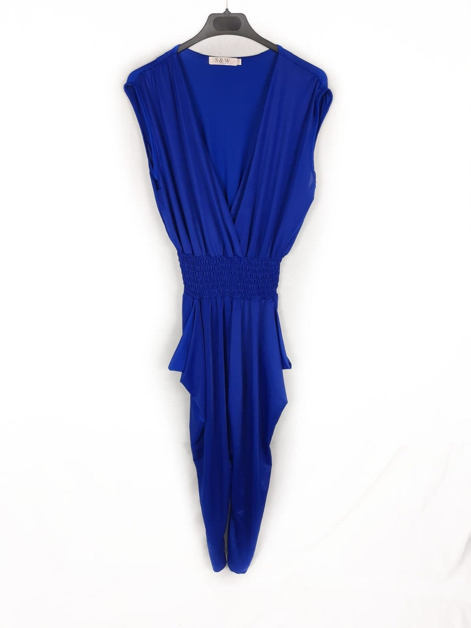 S&w. Mono azul klein elástico de tejido tipo libra. Ajustado en la cinturam y piernas fluidas. Largo 138 cm