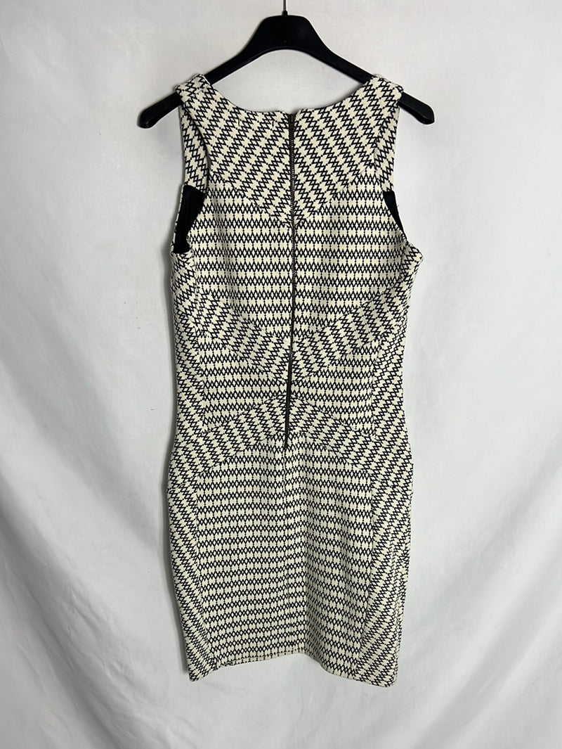 SYSTEMACTION. Vestido blanco y negro textura entallado. T 38