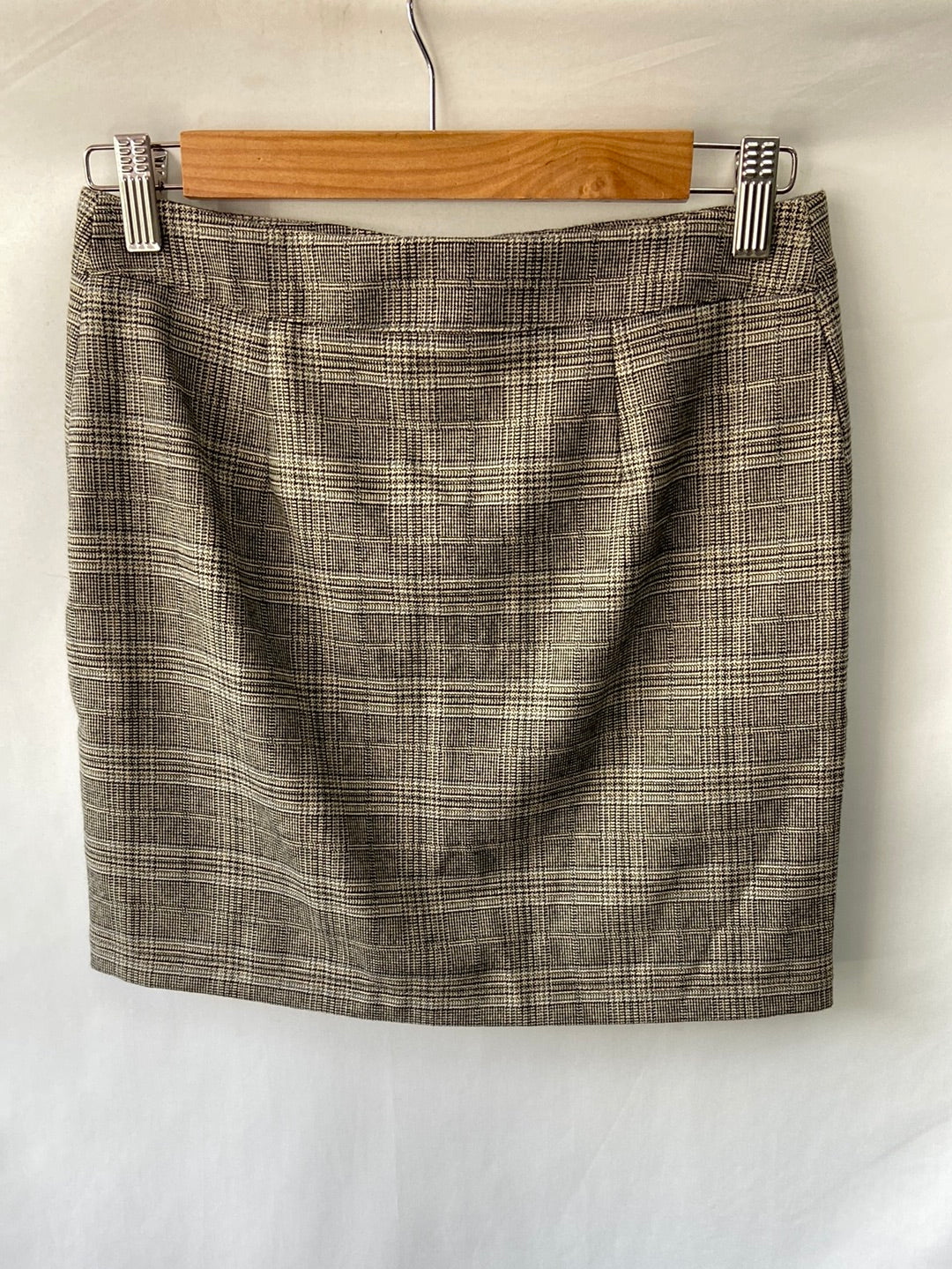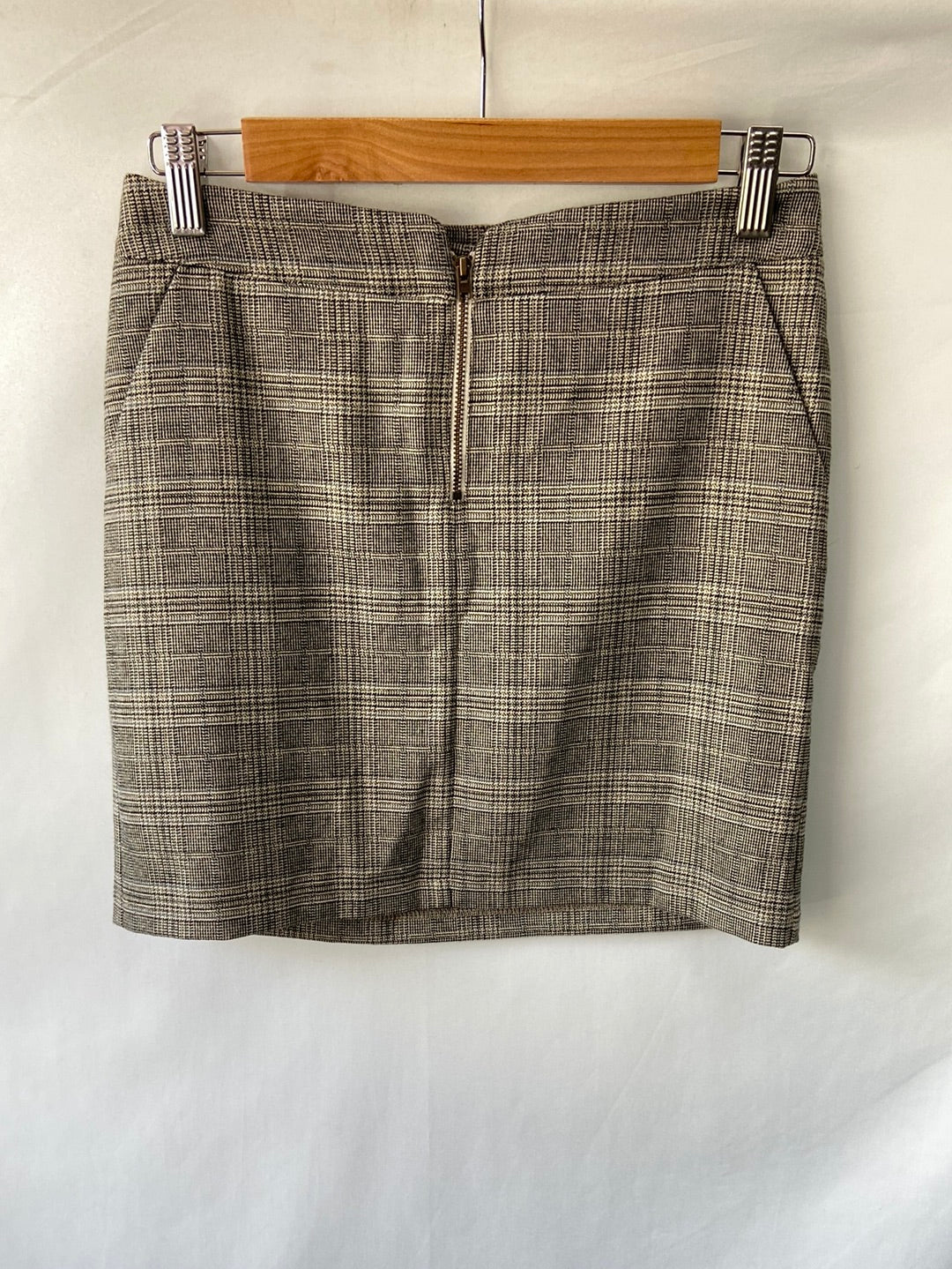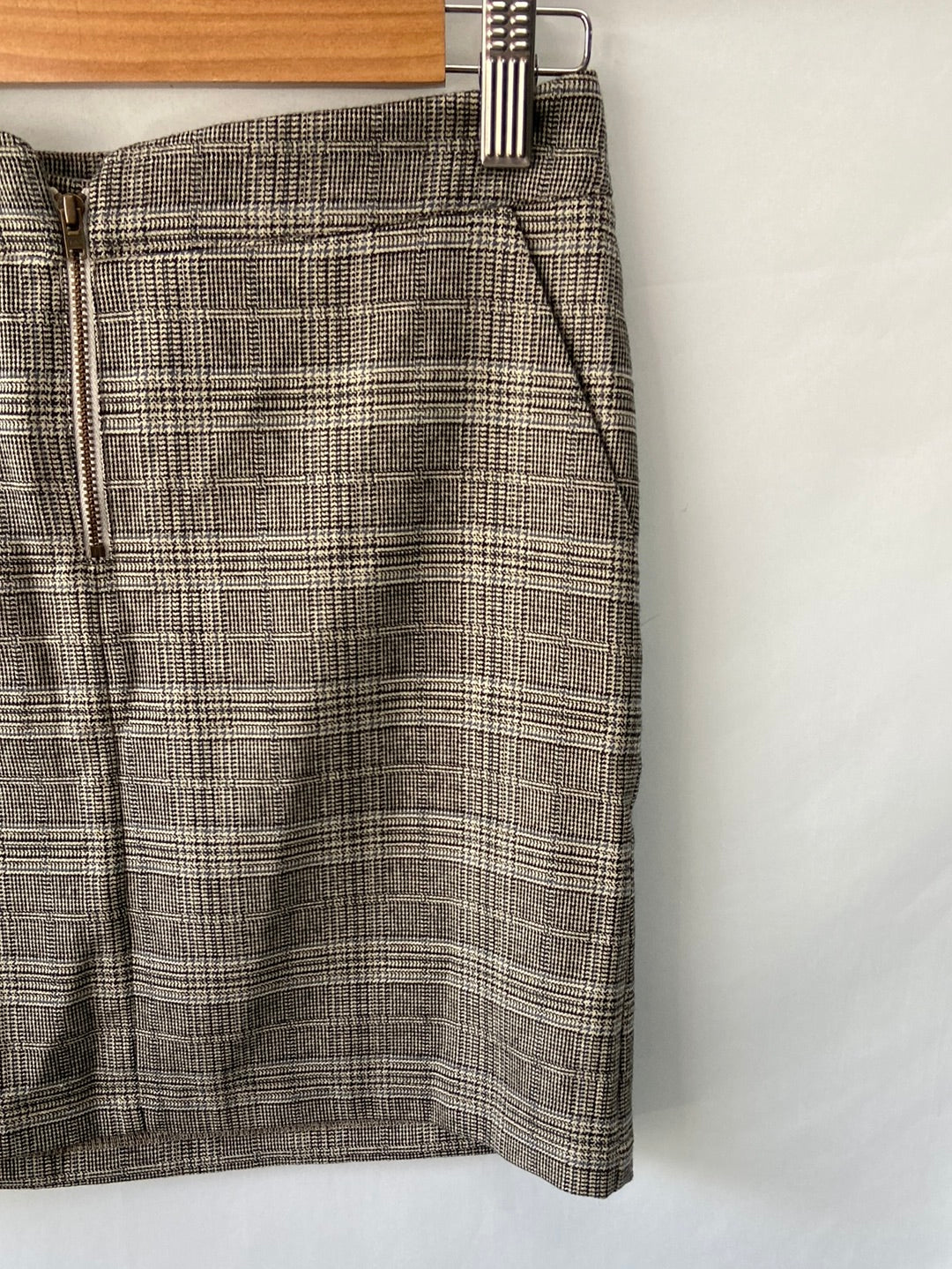 Falda de cuadros en tonos marrones. No es elástica. Se abrocha con cremallera. Cintura 36 cm largo 38 cm
