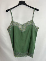 NUEVO CON ETIQUETA. Top verde encaje y pedrería. 100% algodón