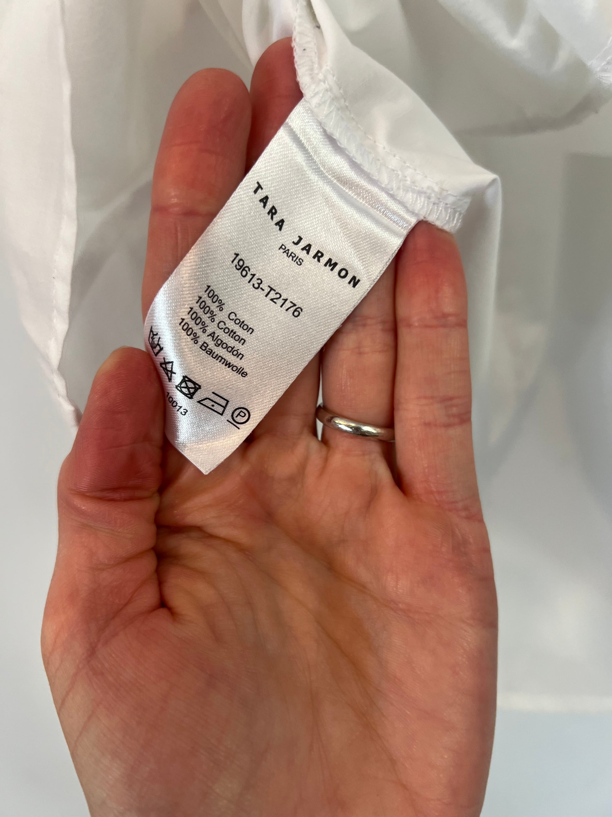 TARA JARMON. Blusa blanca volantes T.42 (m)