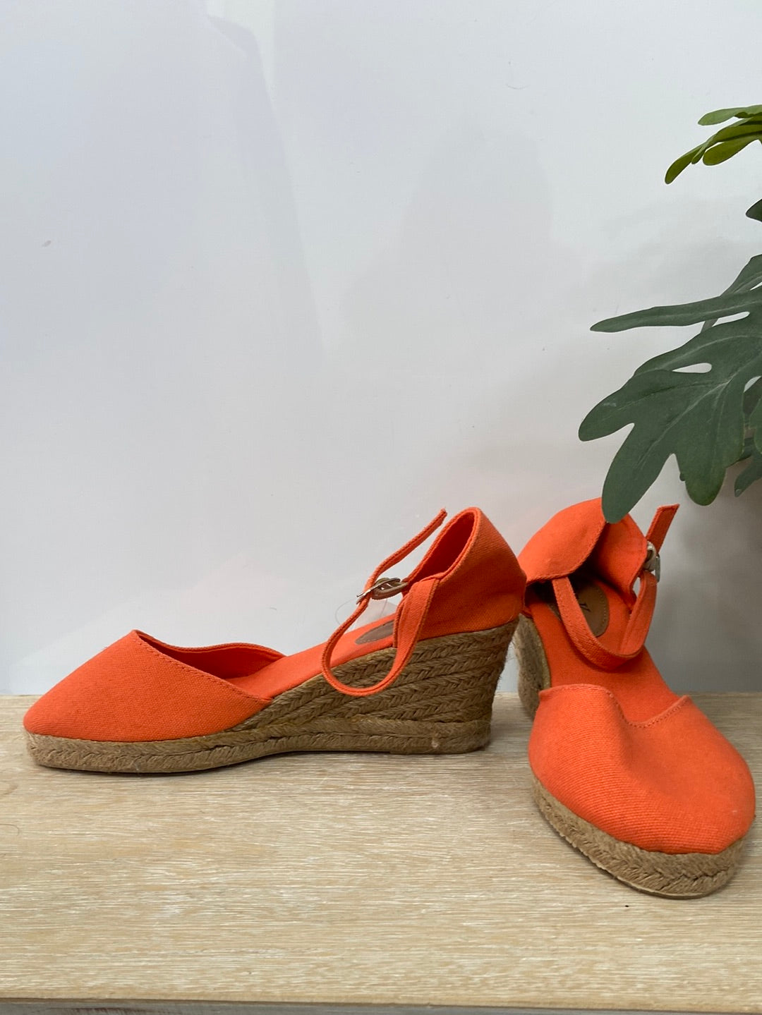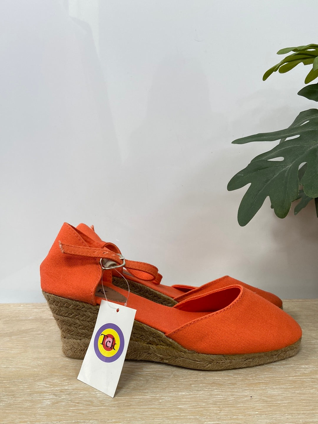 Tck. 37. NUEVAS CON ETIQUETA. Alpargatas naranjas. Tacón 7 cm
