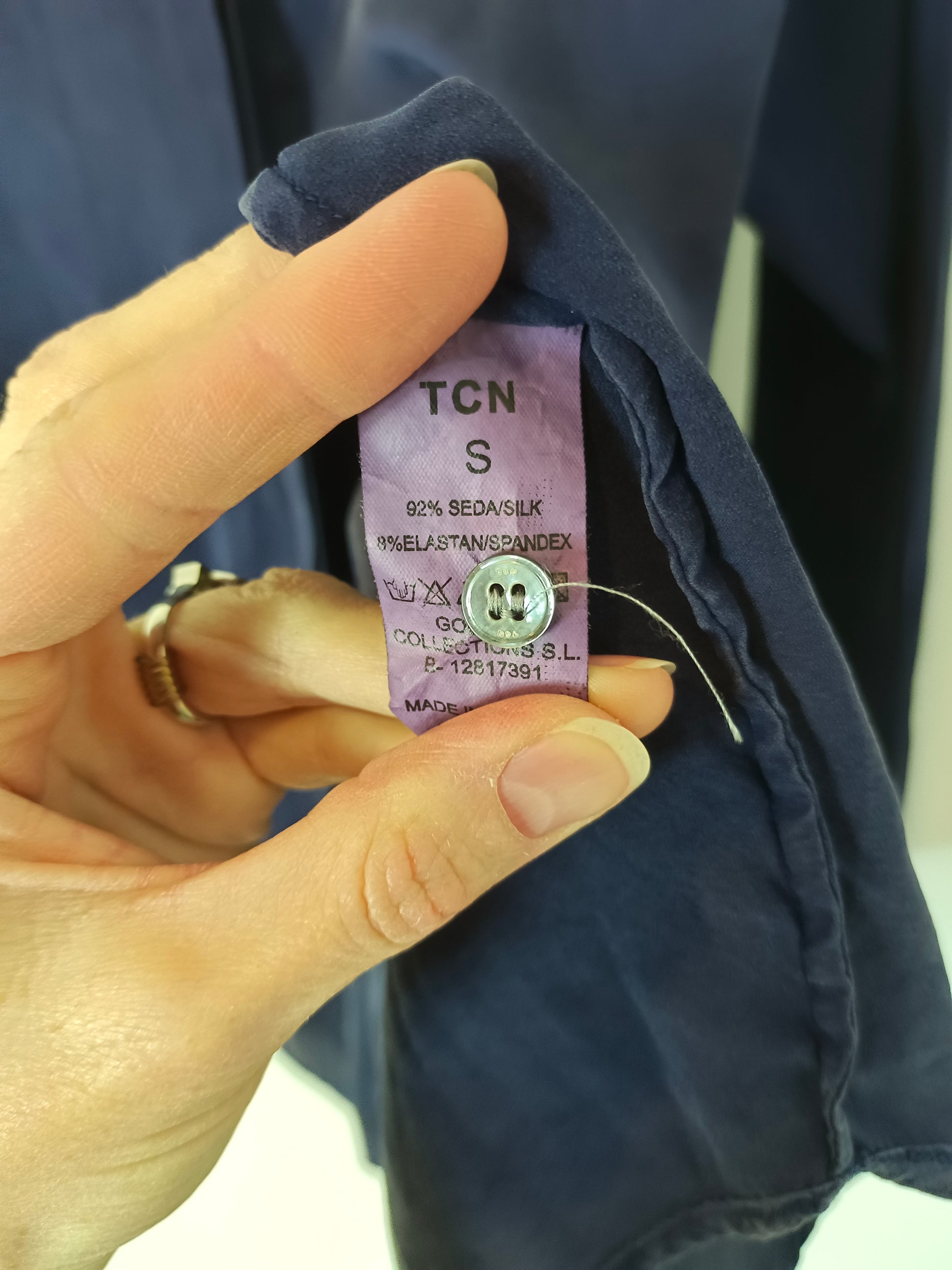 Blusa seda azul fluida efecto desgastado. De sisa a sisa 52 cm largo 70 cm
