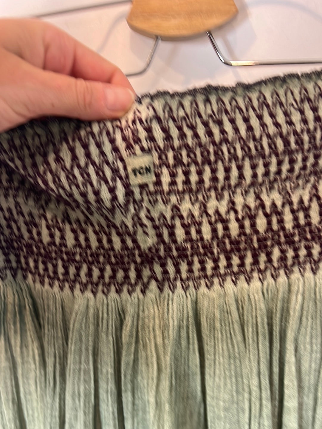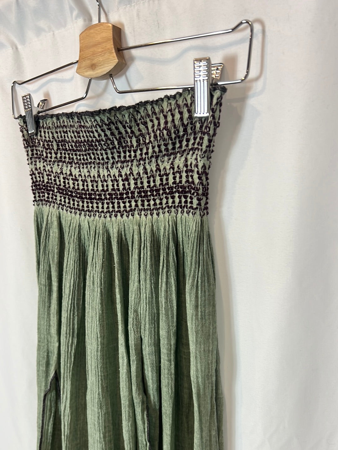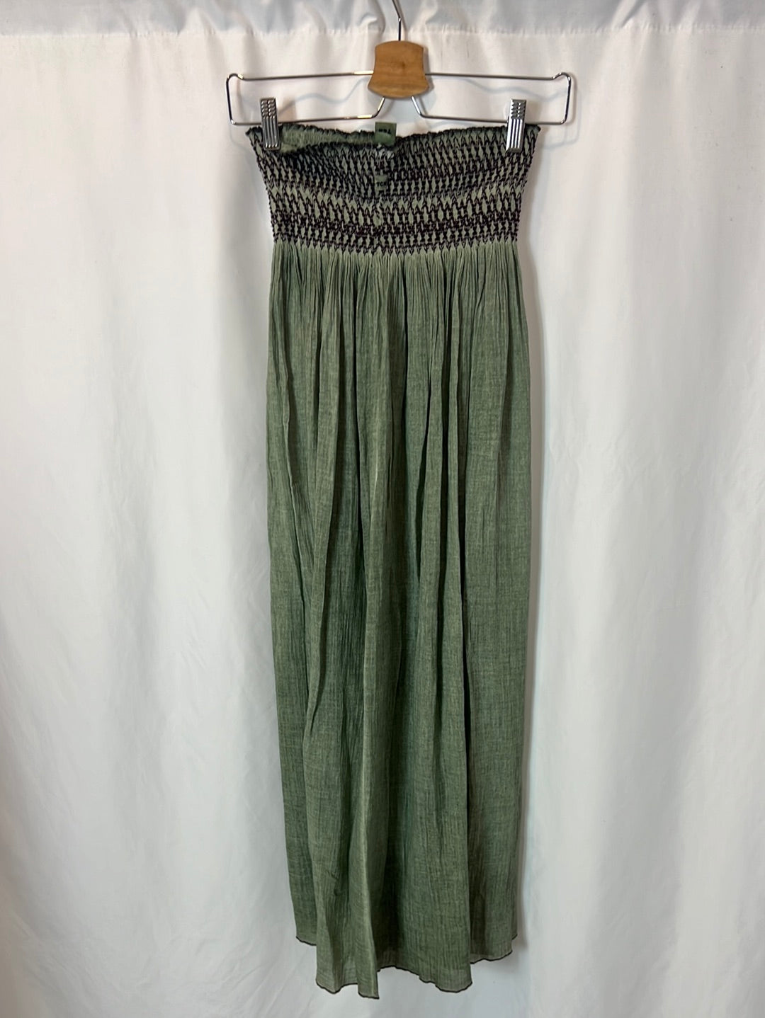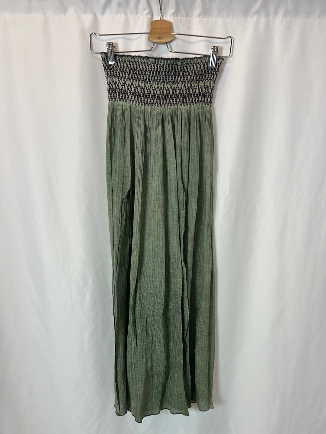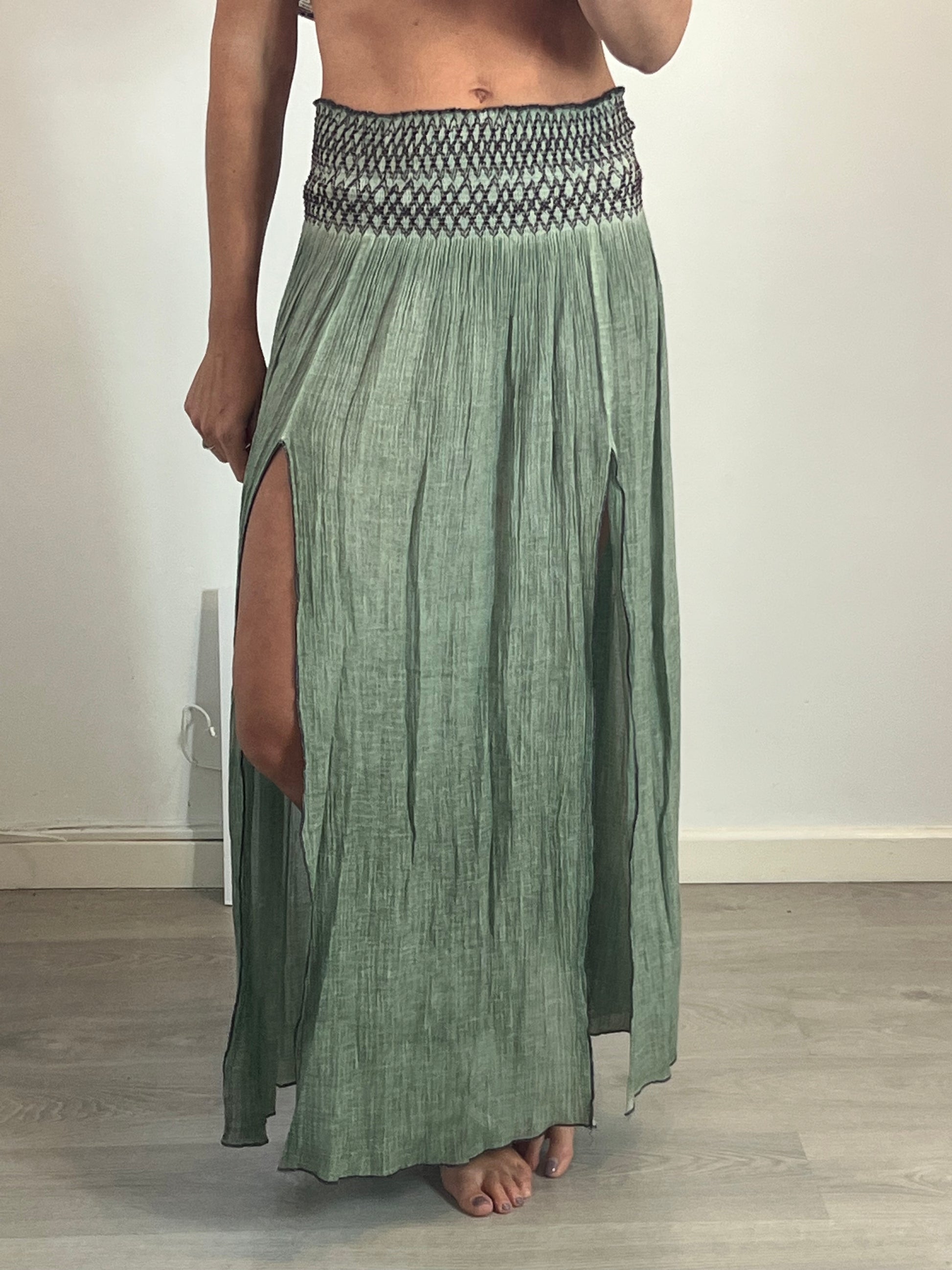 Falda larga aberturas cintura nido de abeja. Cintura 30cm elástico, largo 101cm