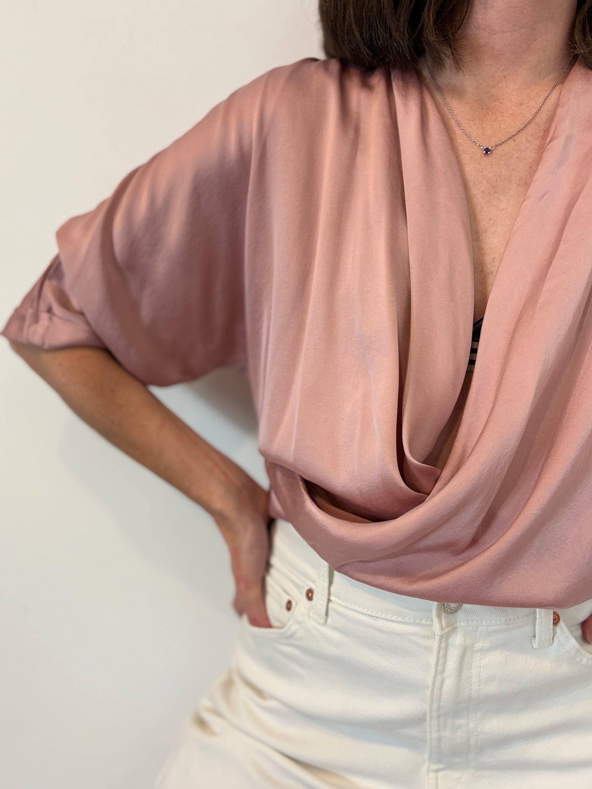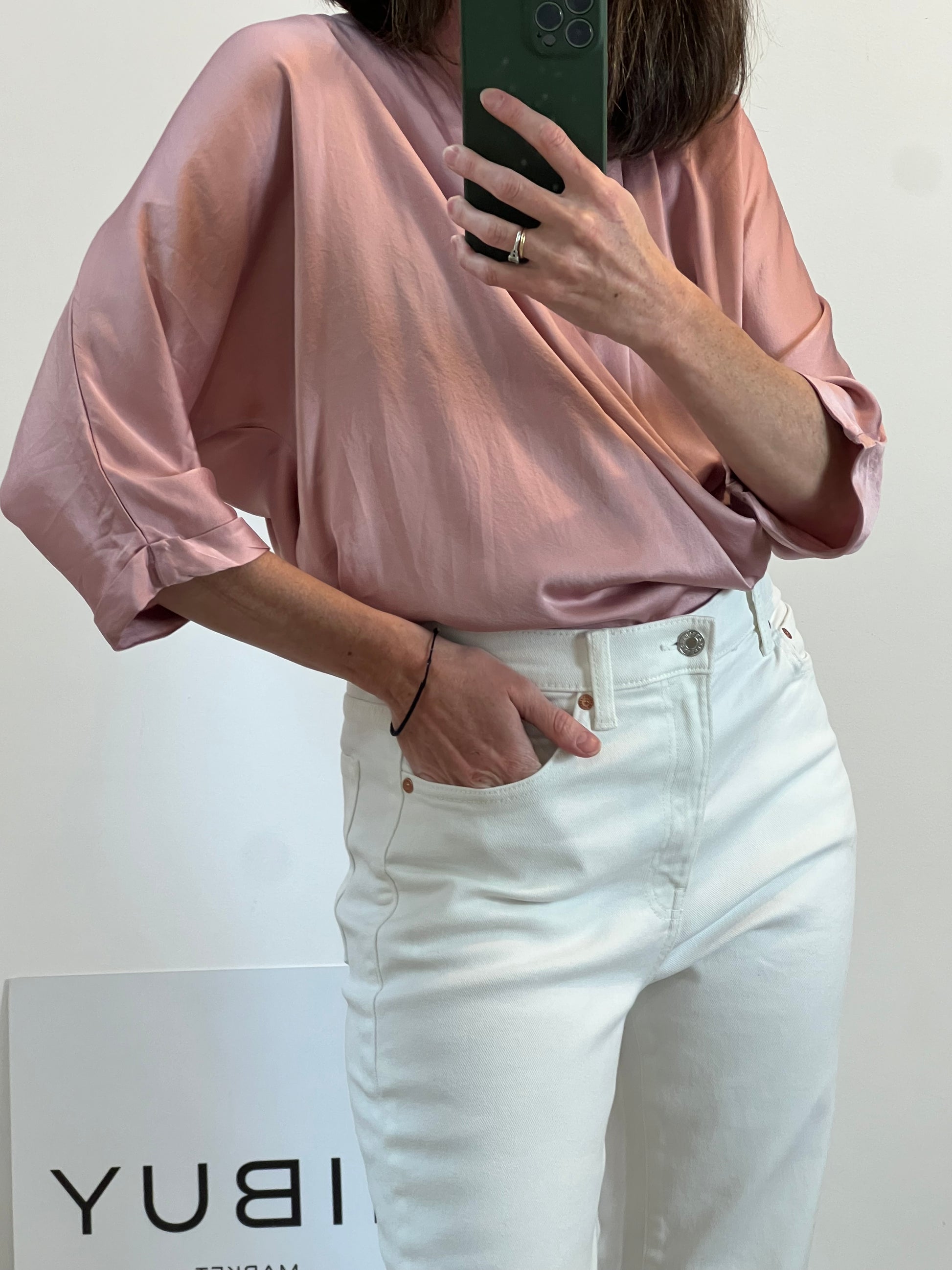 Top fluido rosa palo agua. Espalda 58 cm , largo 64 cm