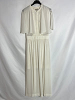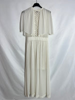 Vestido midi blanco roto detalle encajes. Cintura 32 cm y largo 132cm. De sisa a sisa 38cm