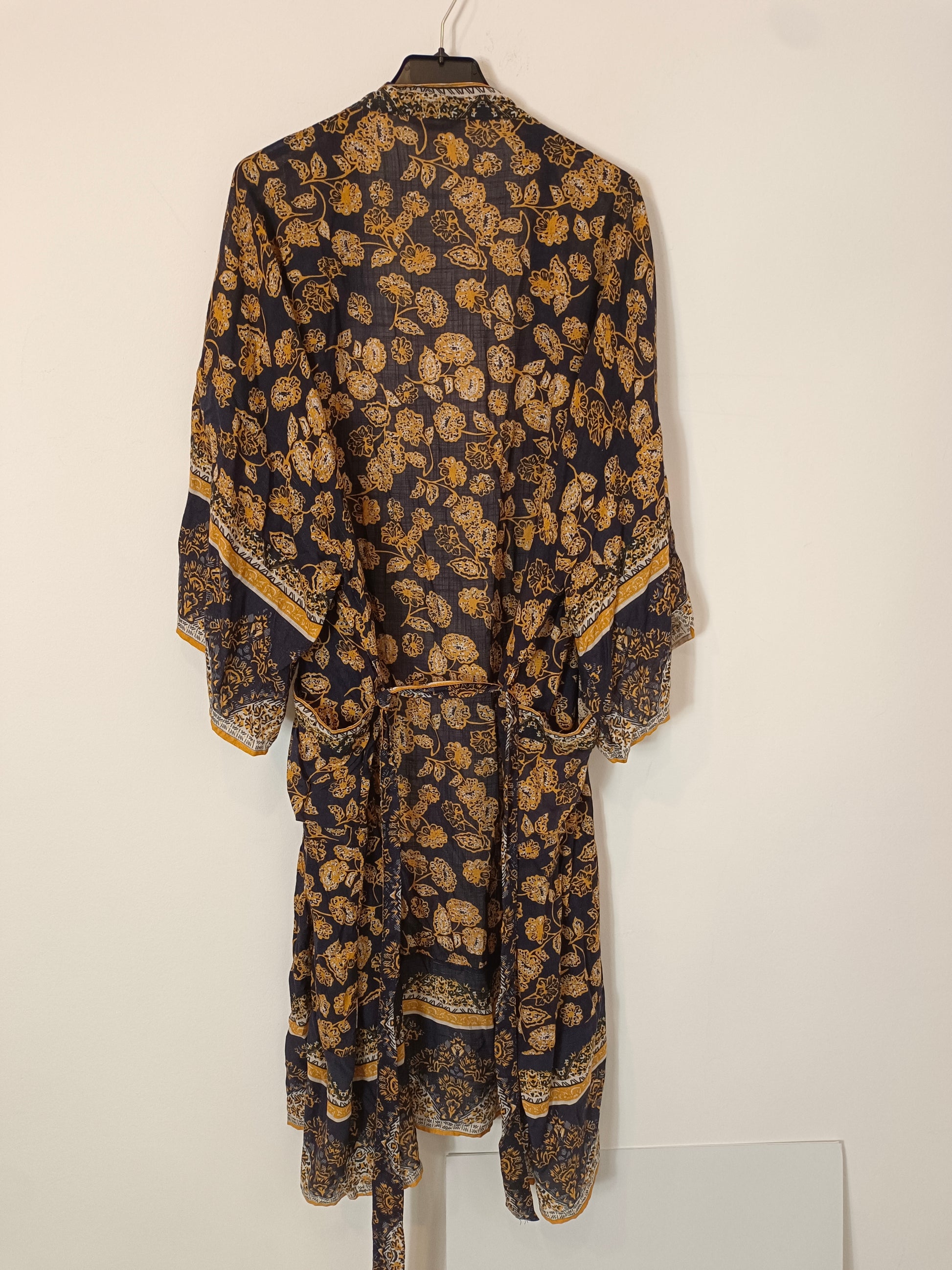 TEN TWELVE. Kimono azul flores mostaza T.s/m